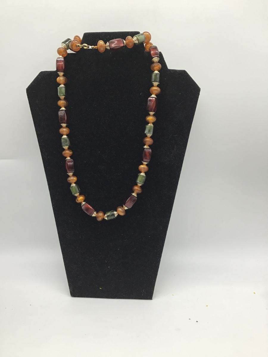 Red, orange, and green beaded necklace