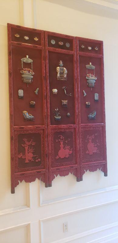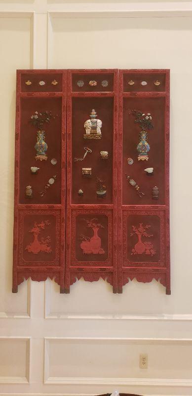 Vintage Oriental Style 3 Panels Screen Room Divider # 1