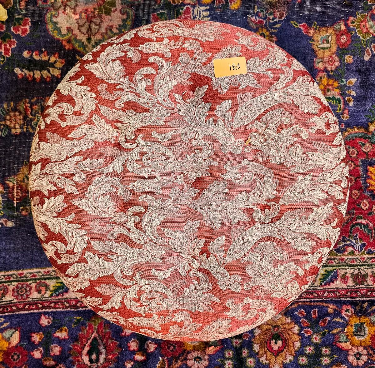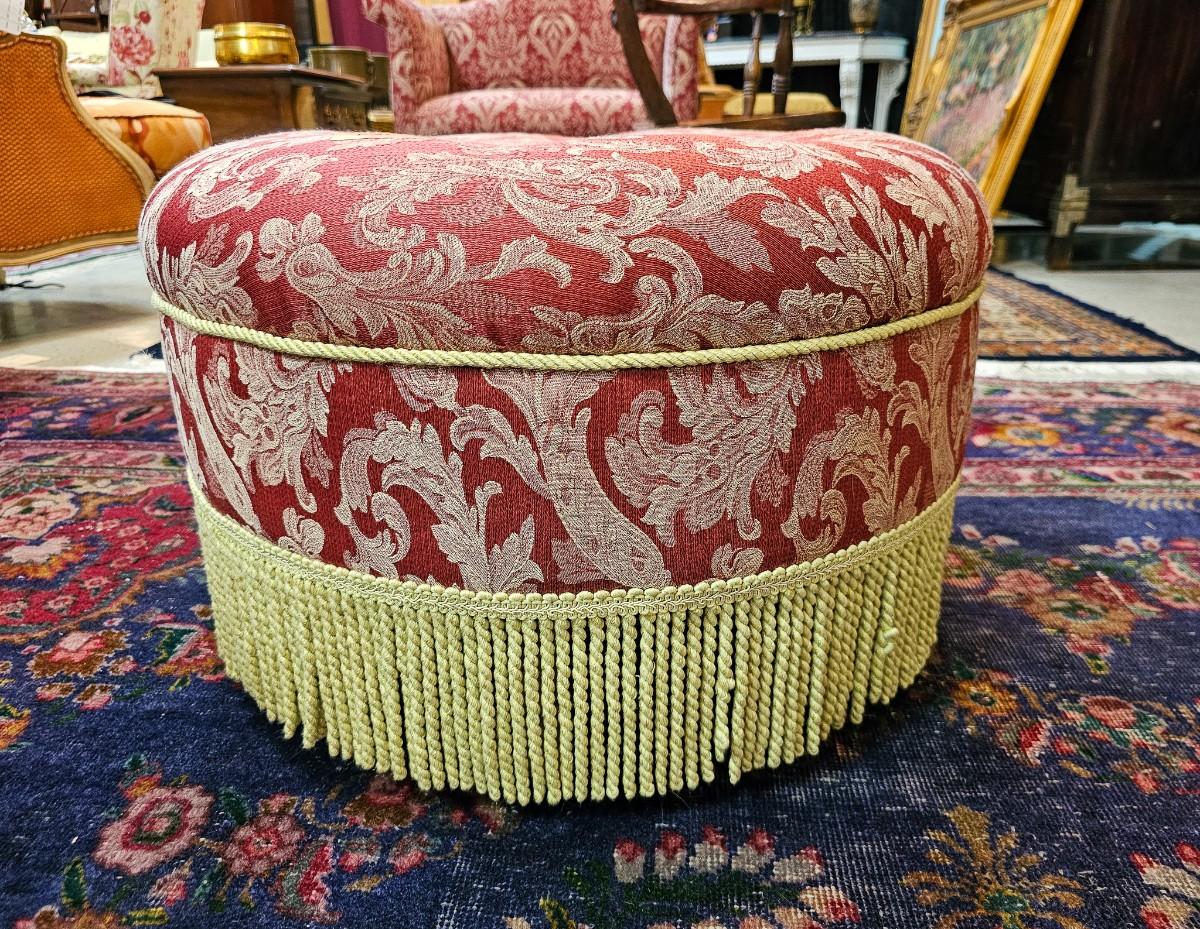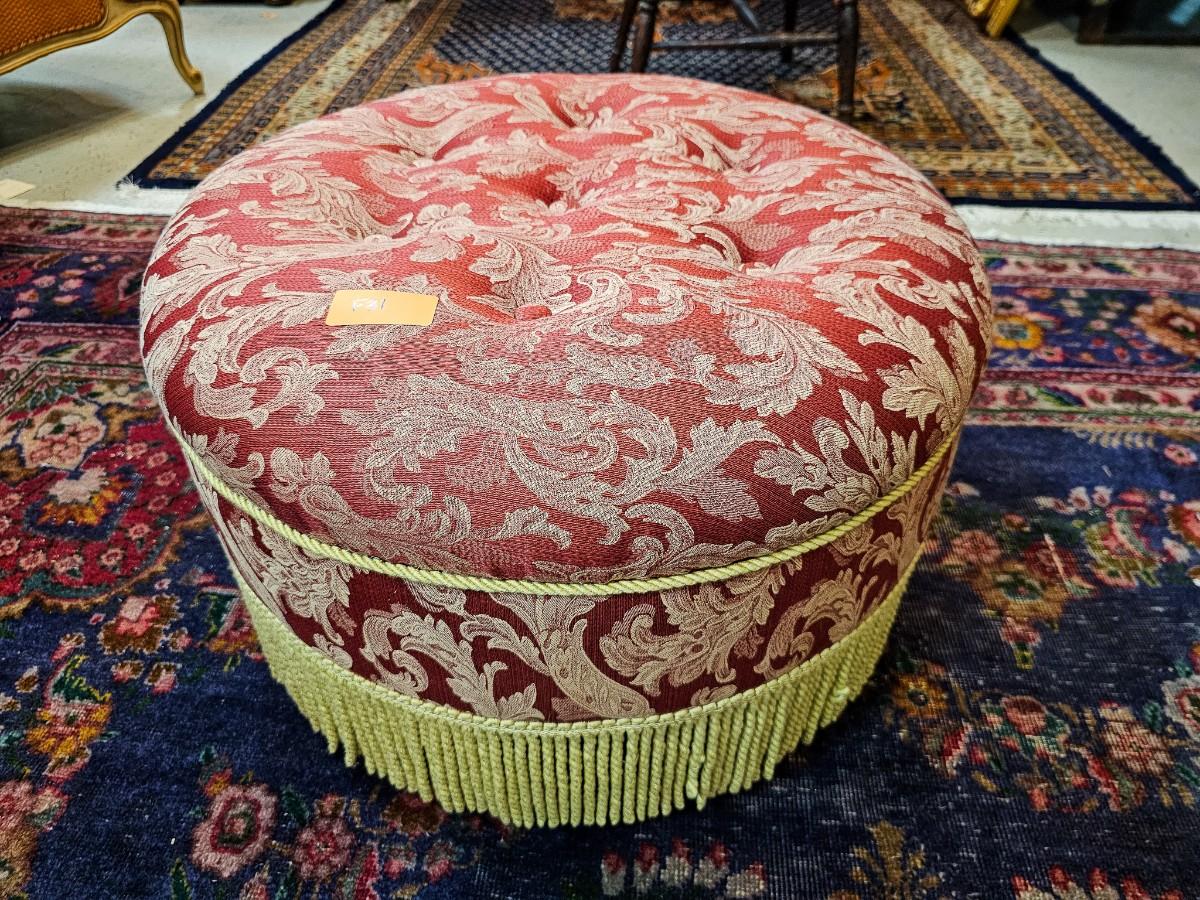 Red round ottoman, 24"W x 15"H