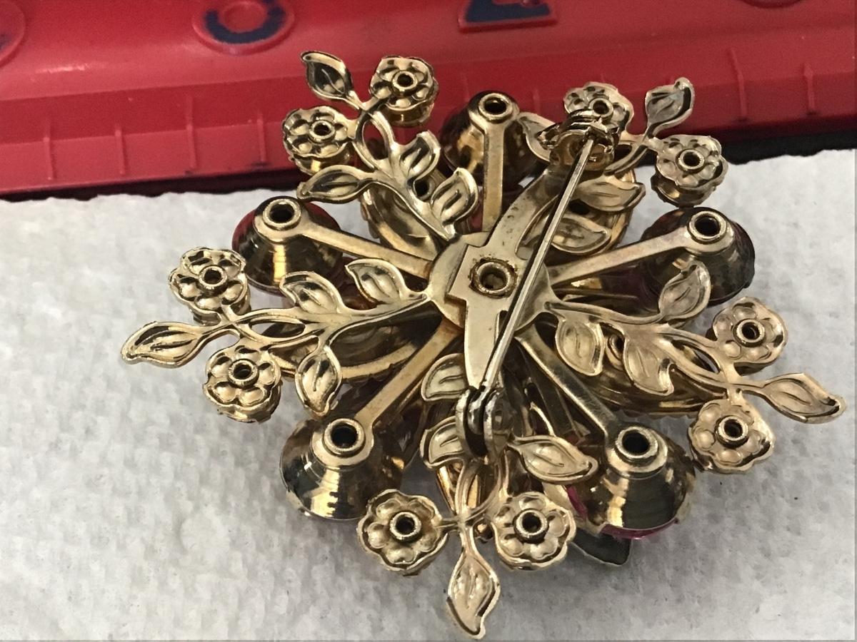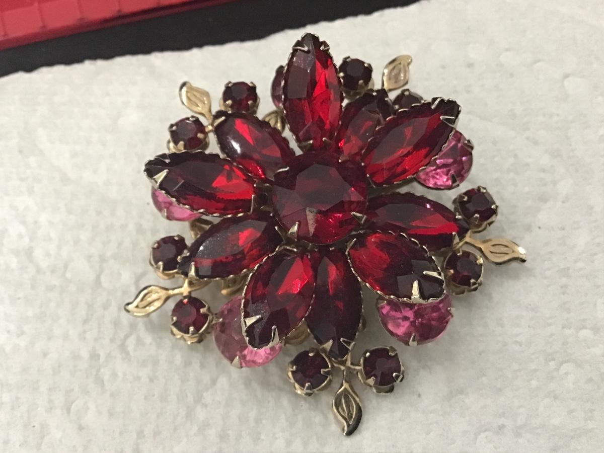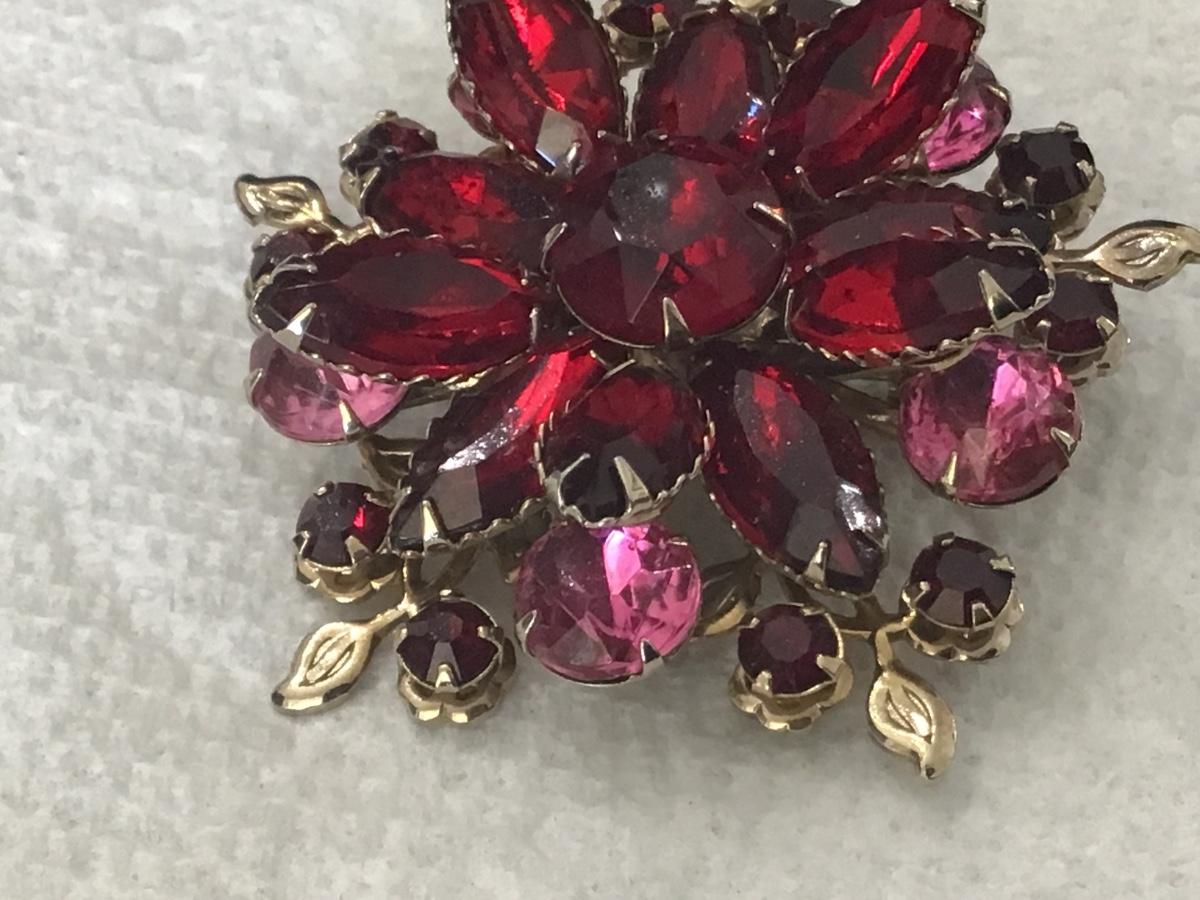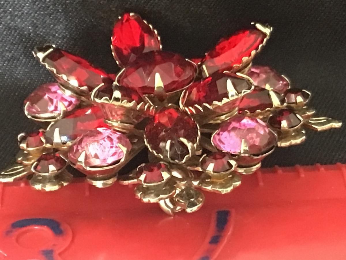 Red & Pink Rhinestone Large Vintage Brooch Pin