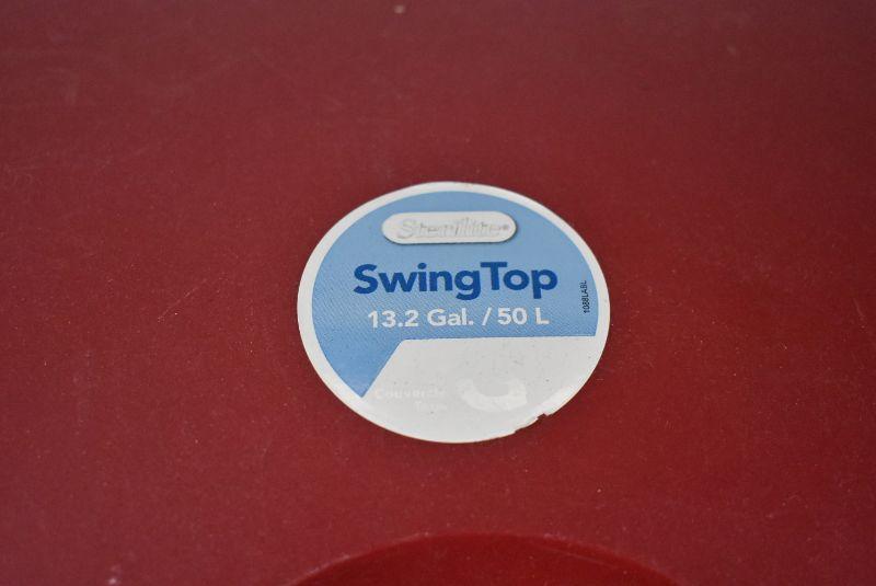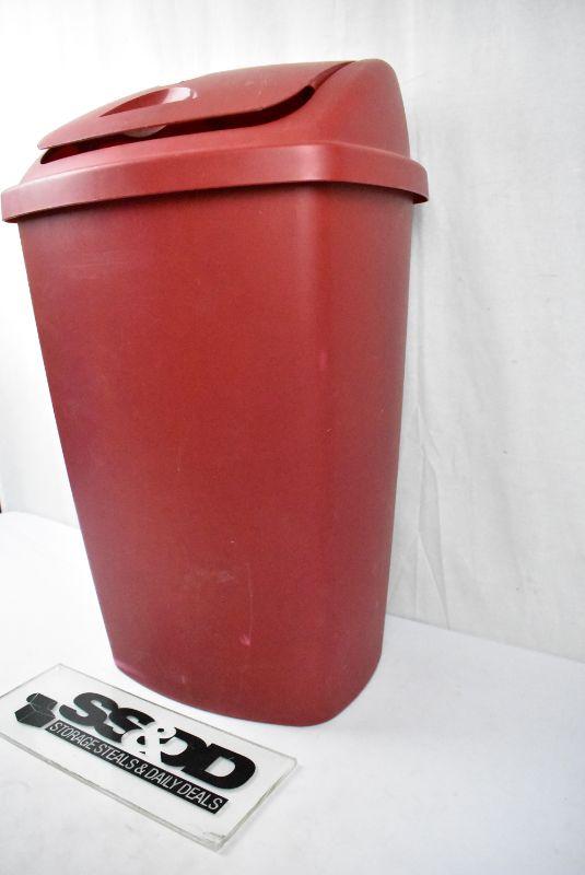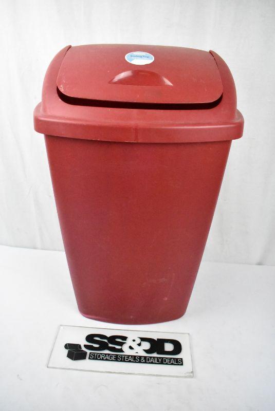 Red Plastic Garbage Can with Swing Top Lid, 13.2 Gallon Size
