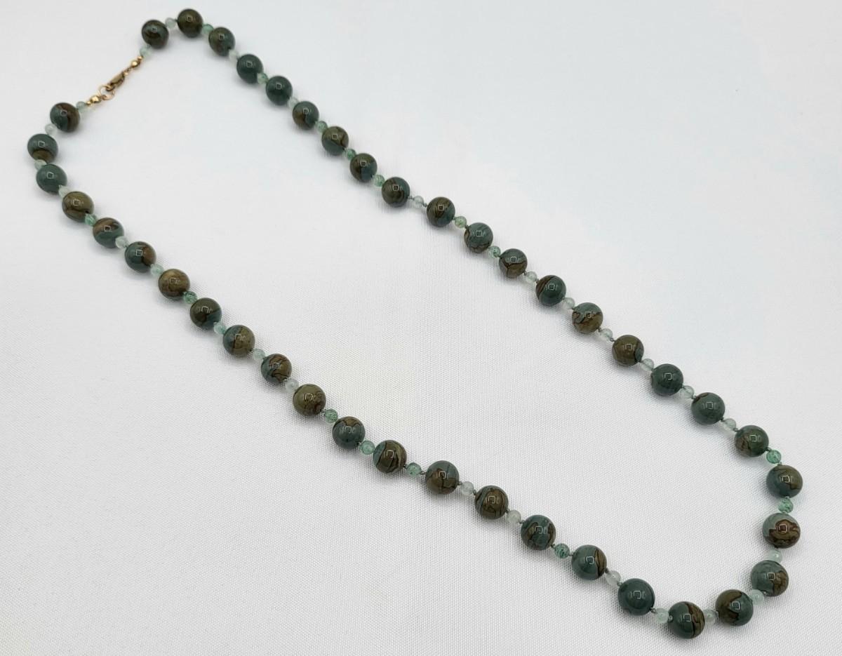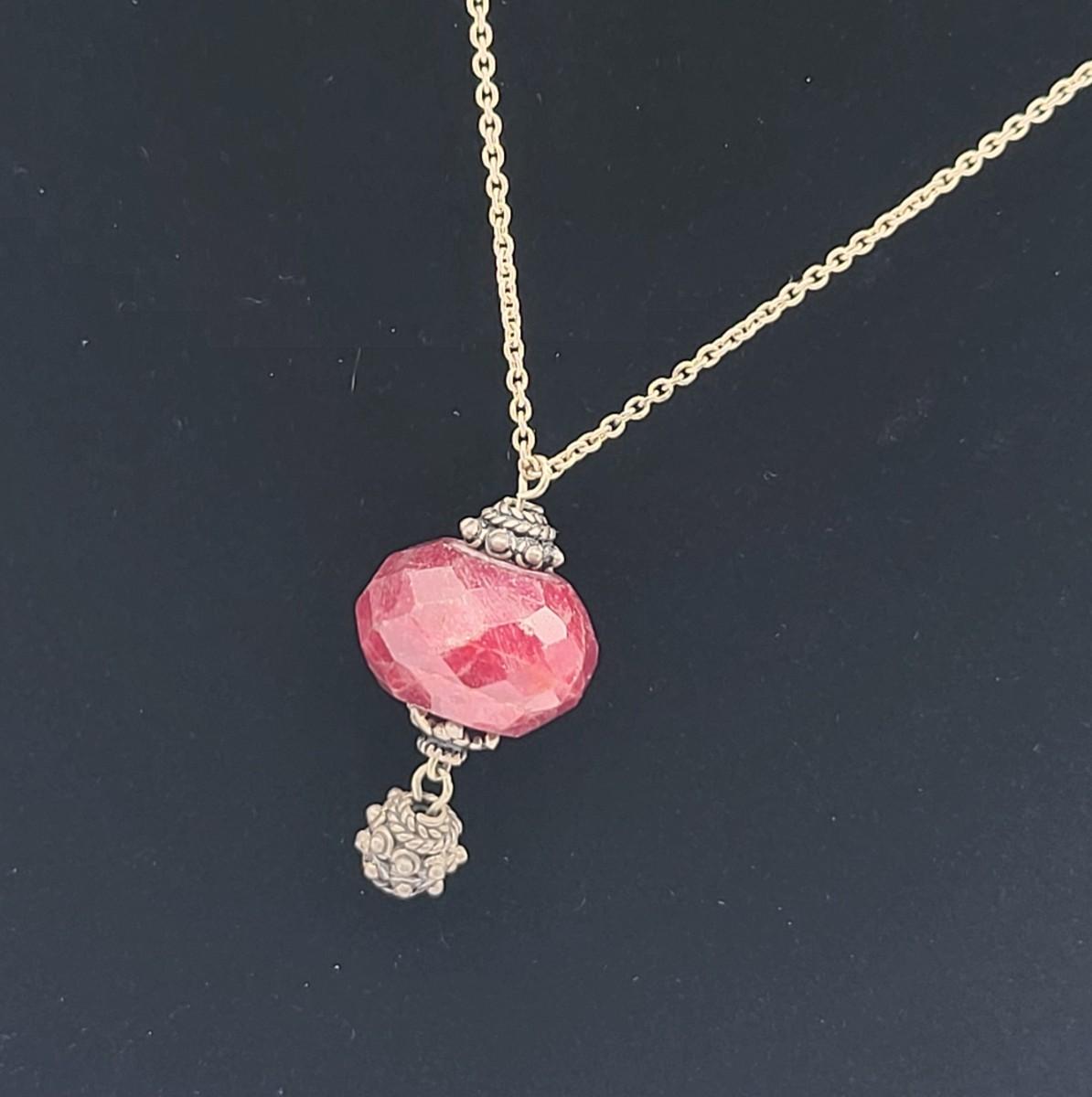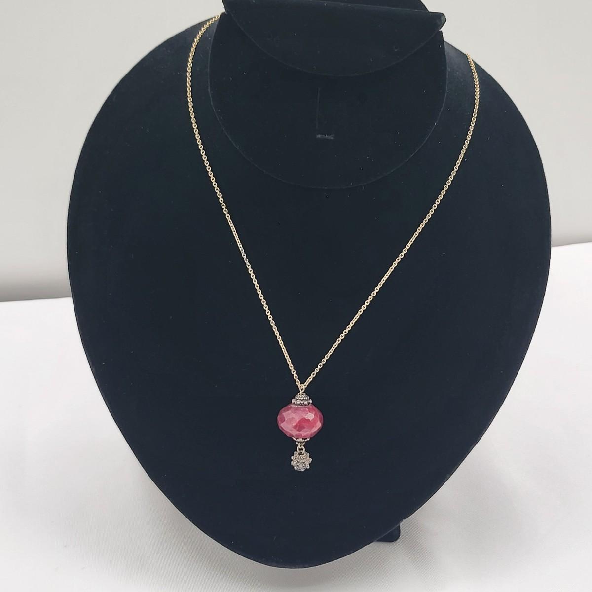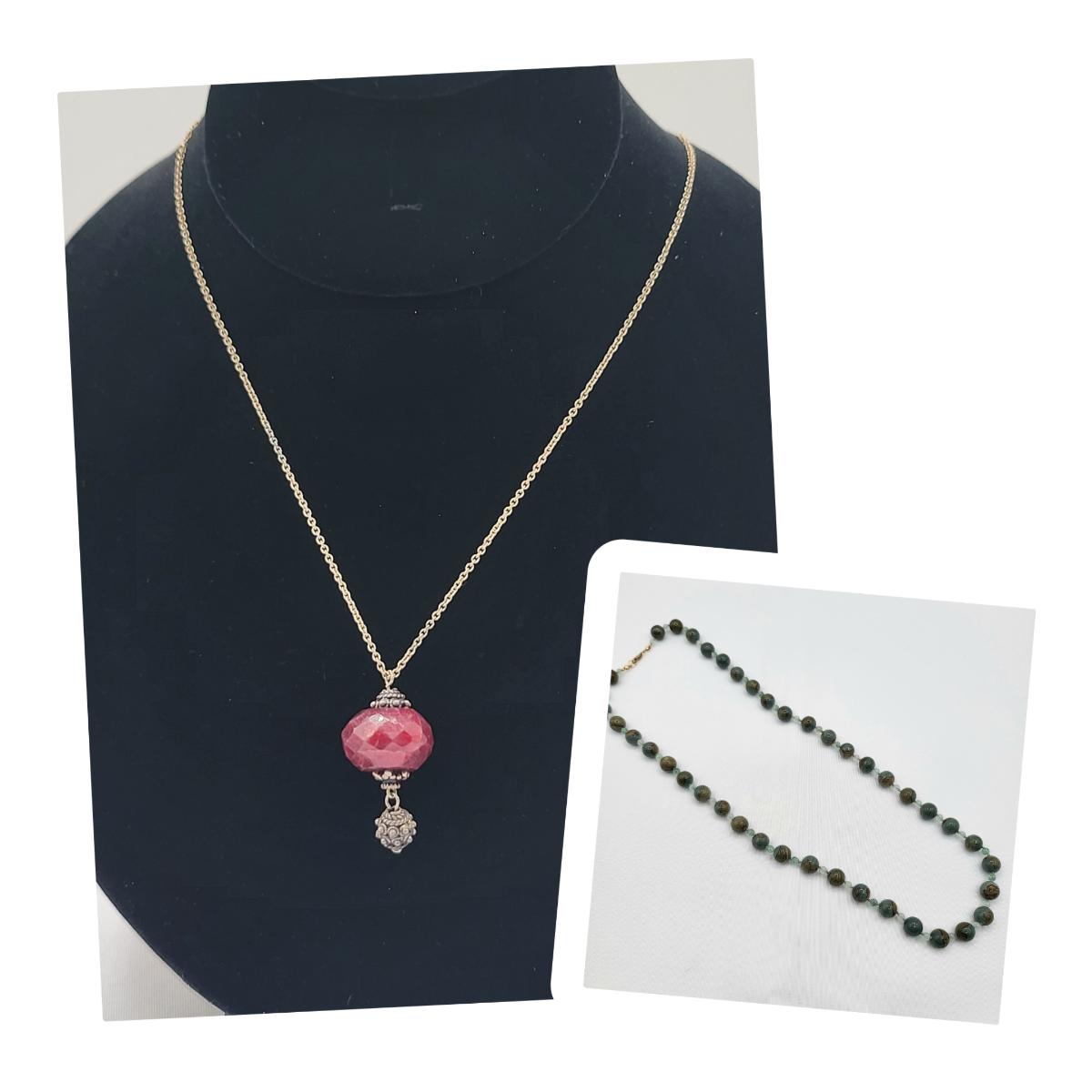 Faceted red Quartz bead pendant necklace on 18" chain. Single strand earth tones marbled Quartz beaded 26" necklace with gold filled clasp.