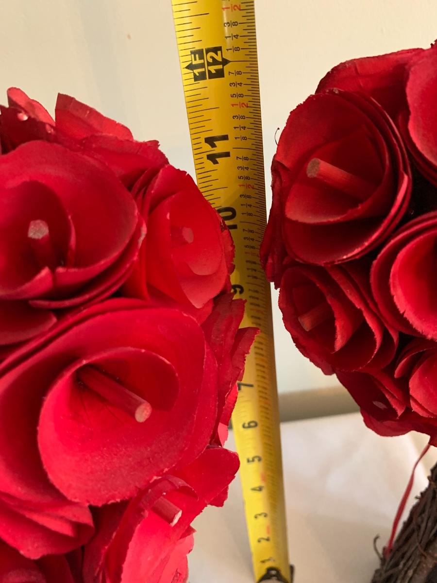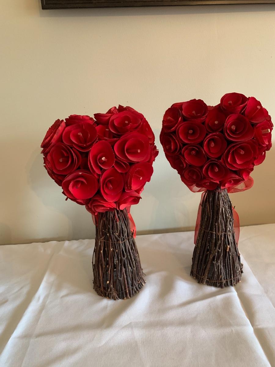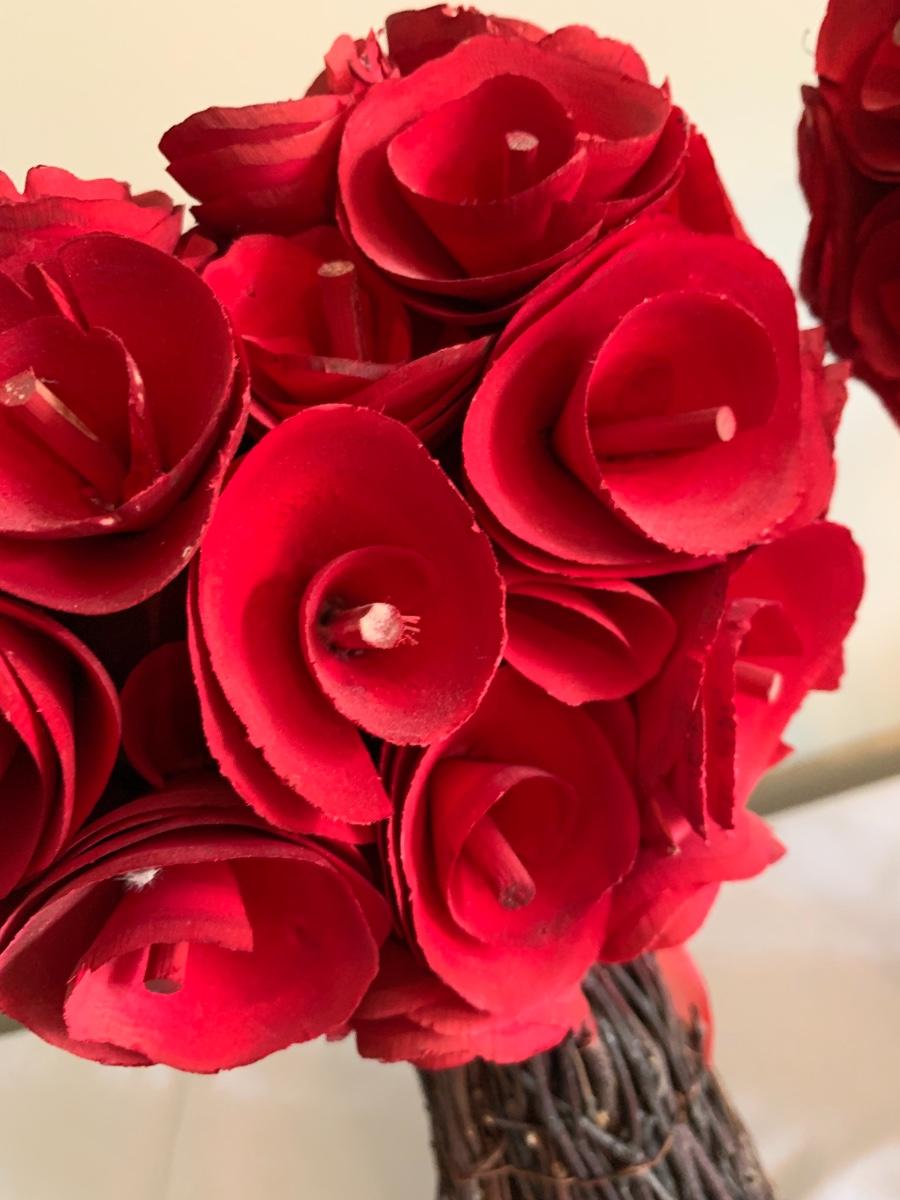 Red Rose Topiary Decoration for Valentine's Day (Carved Wood) Rustic Home Decor. Unique carved wooden petals give this bouquet of roses natural charm.