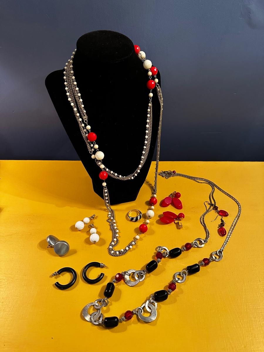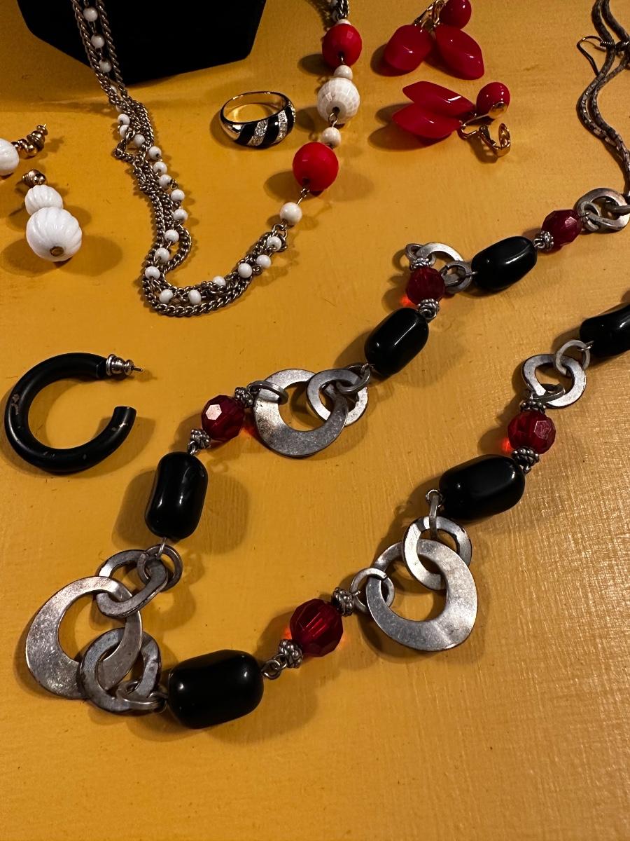 Red, silver and black jewelry