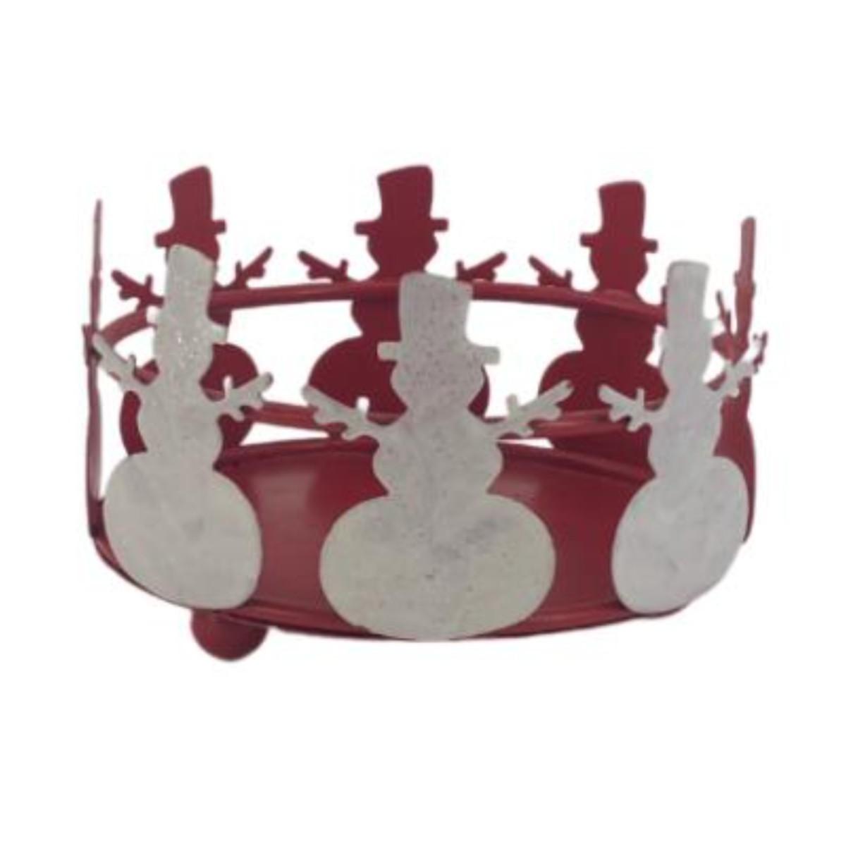 Red and white snowman candle holder. Fits Bath & Body Works 3-wick candles or similar sizes. Measures 4.5” inside diameter and 3” in height.