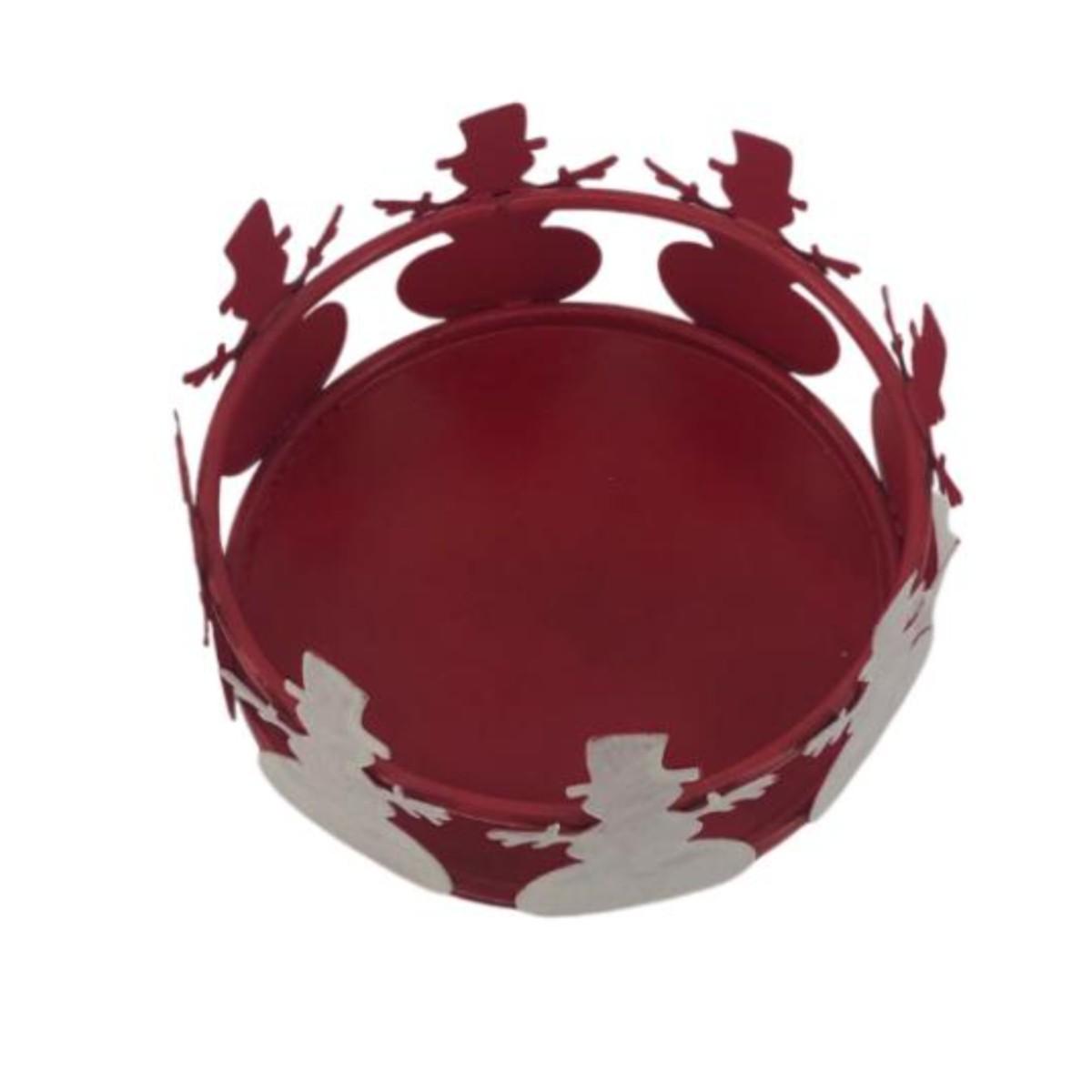 Red and white snowman candle holder. Fits Bath & Body Works 3-wick candles or similar sizes. Measures 4.5” inside diameter and 3” in height.