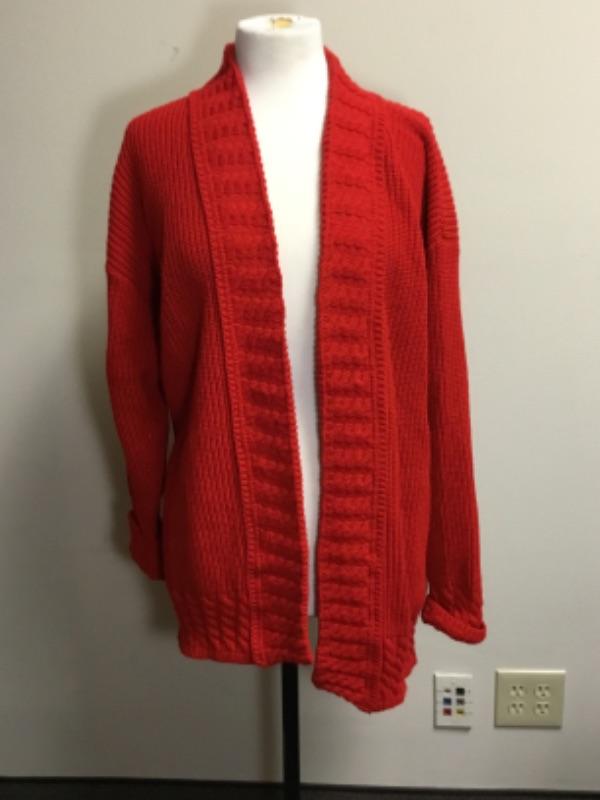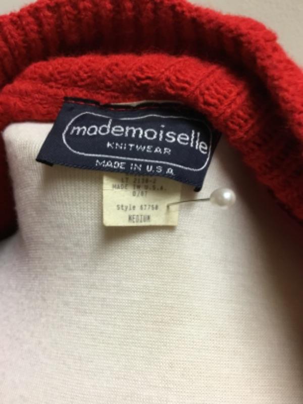 vintage Mademoiselle Red knit cardigan sweater, size M medium, 100% acrylic Made in USA