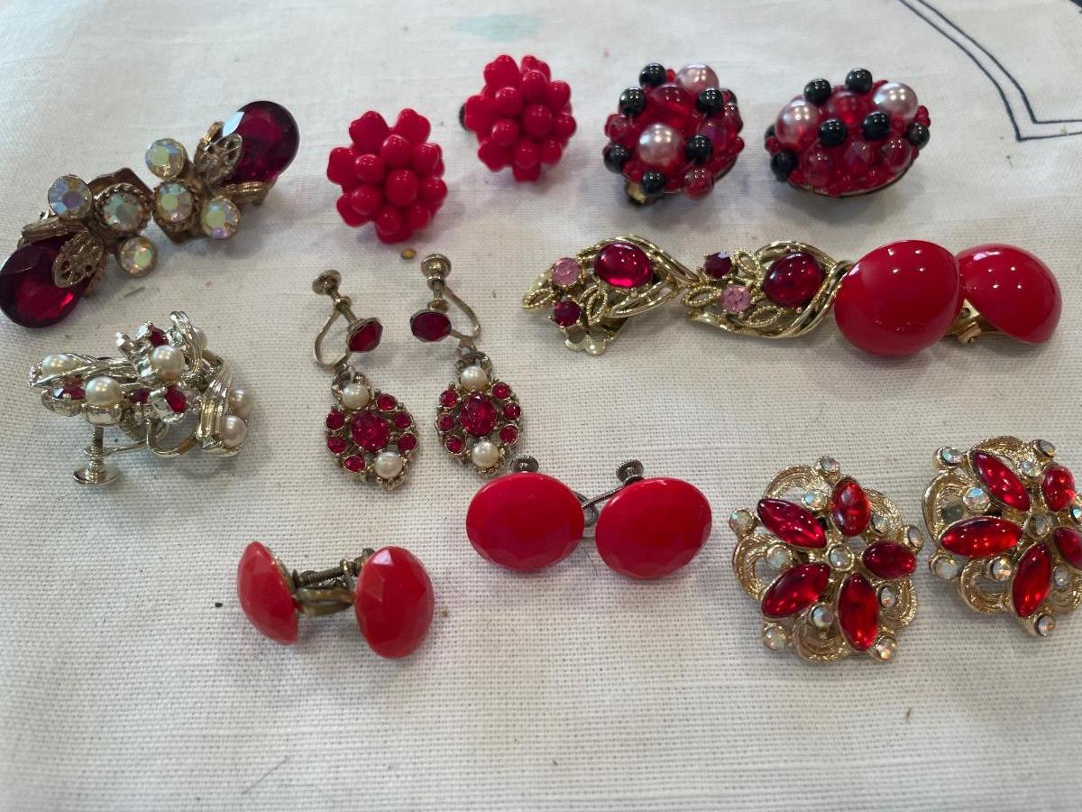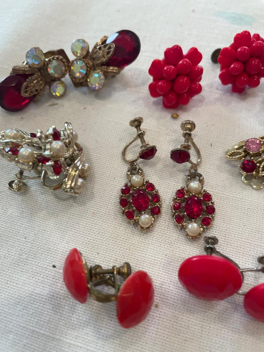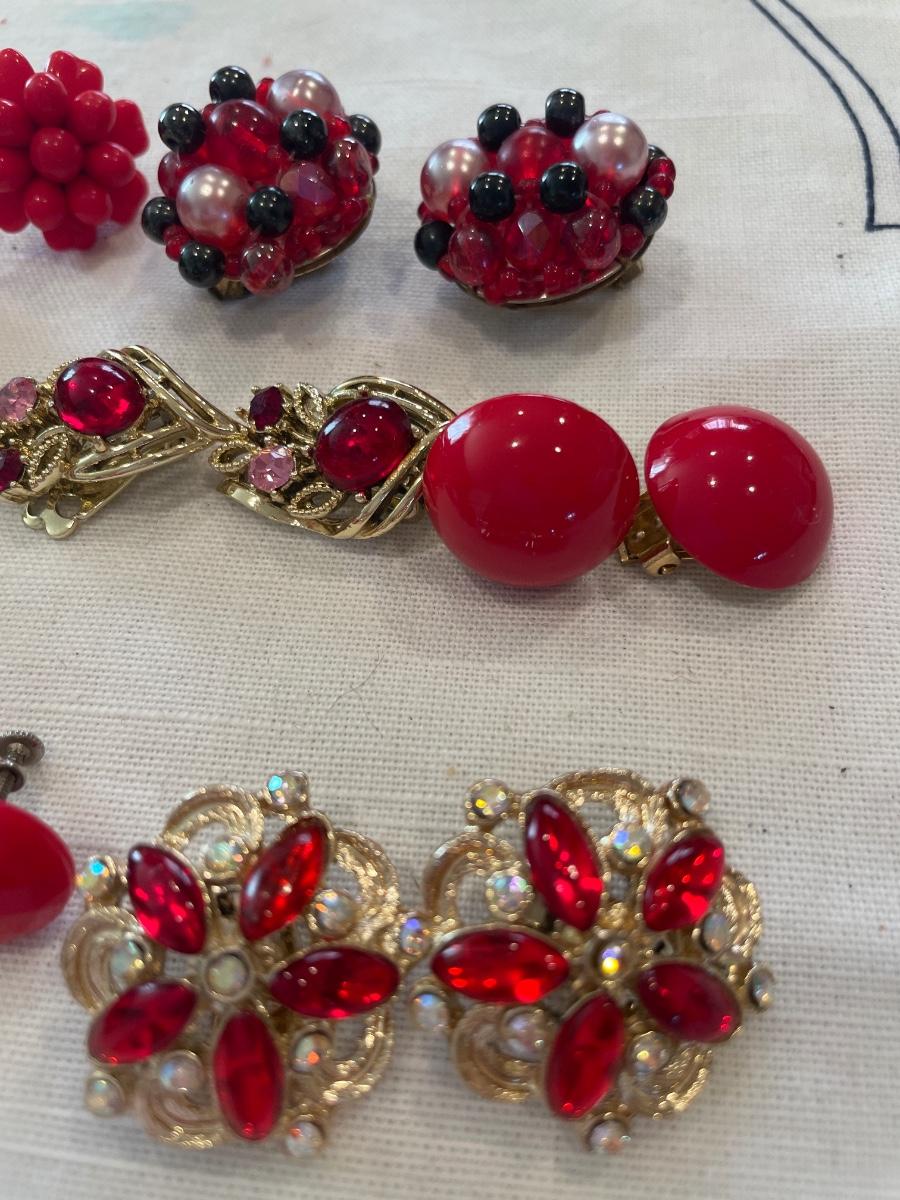 Red tone clip on earrings