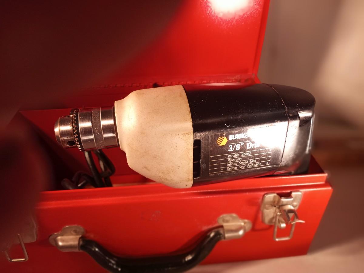 Very nice red metal box with Black and Decker electric drill