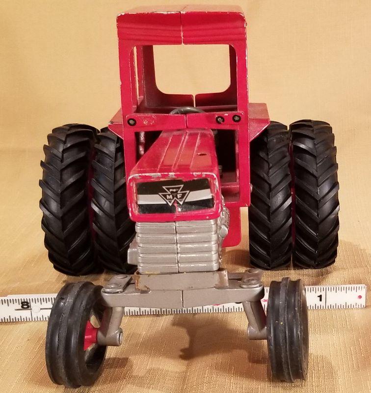 Very heavy die cast and in good overall condition. Tractor measures 9-inches long X 7 1/2-inches wide X 7-inches tall.