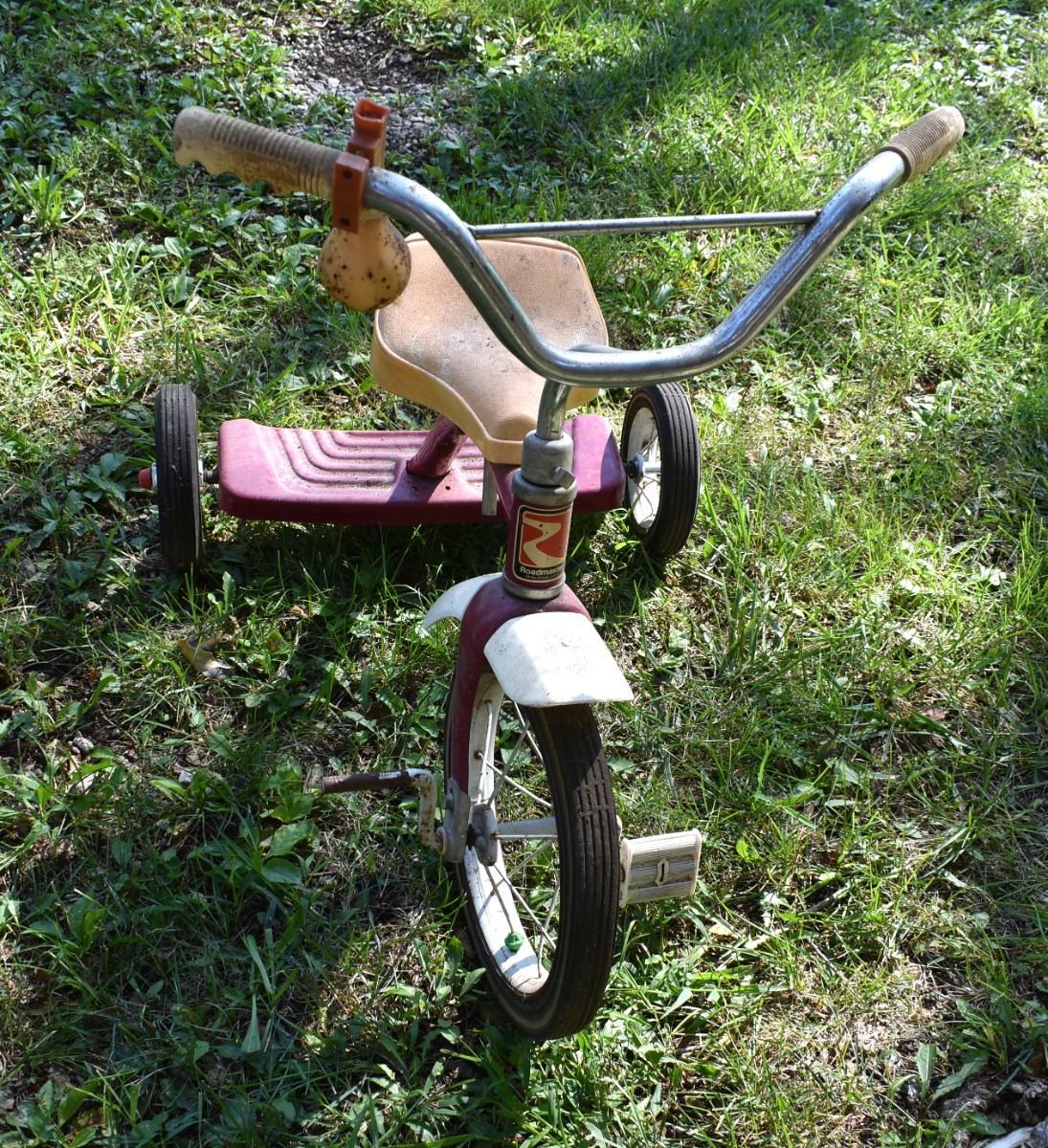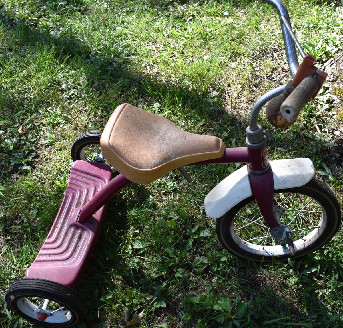 Kids red trike. In over all good condition. Seat has some yellowing.