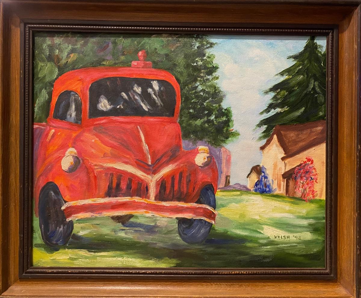 1998 Oil on Canvas, Red Truck Art by Dorothy Walsh - 24" W x 20" T. Signed and Framed