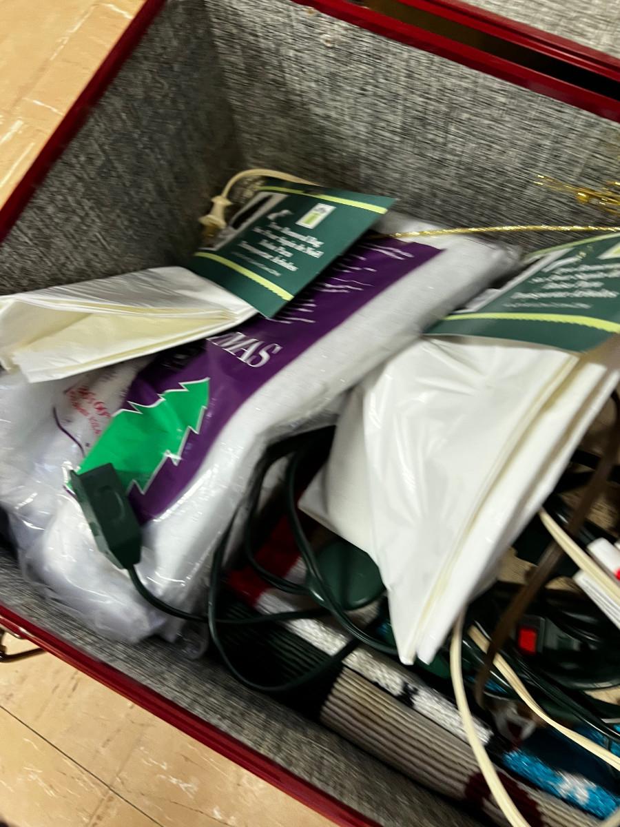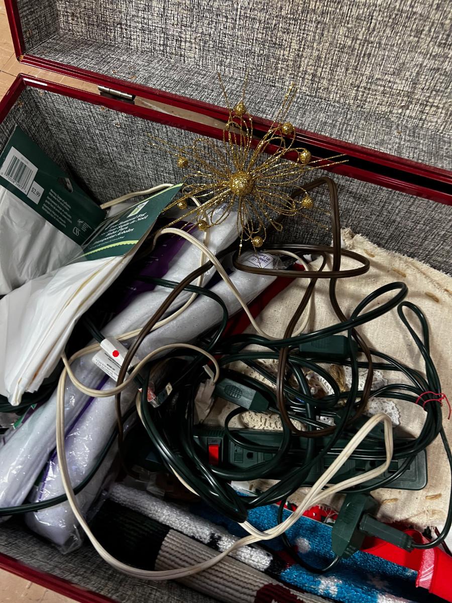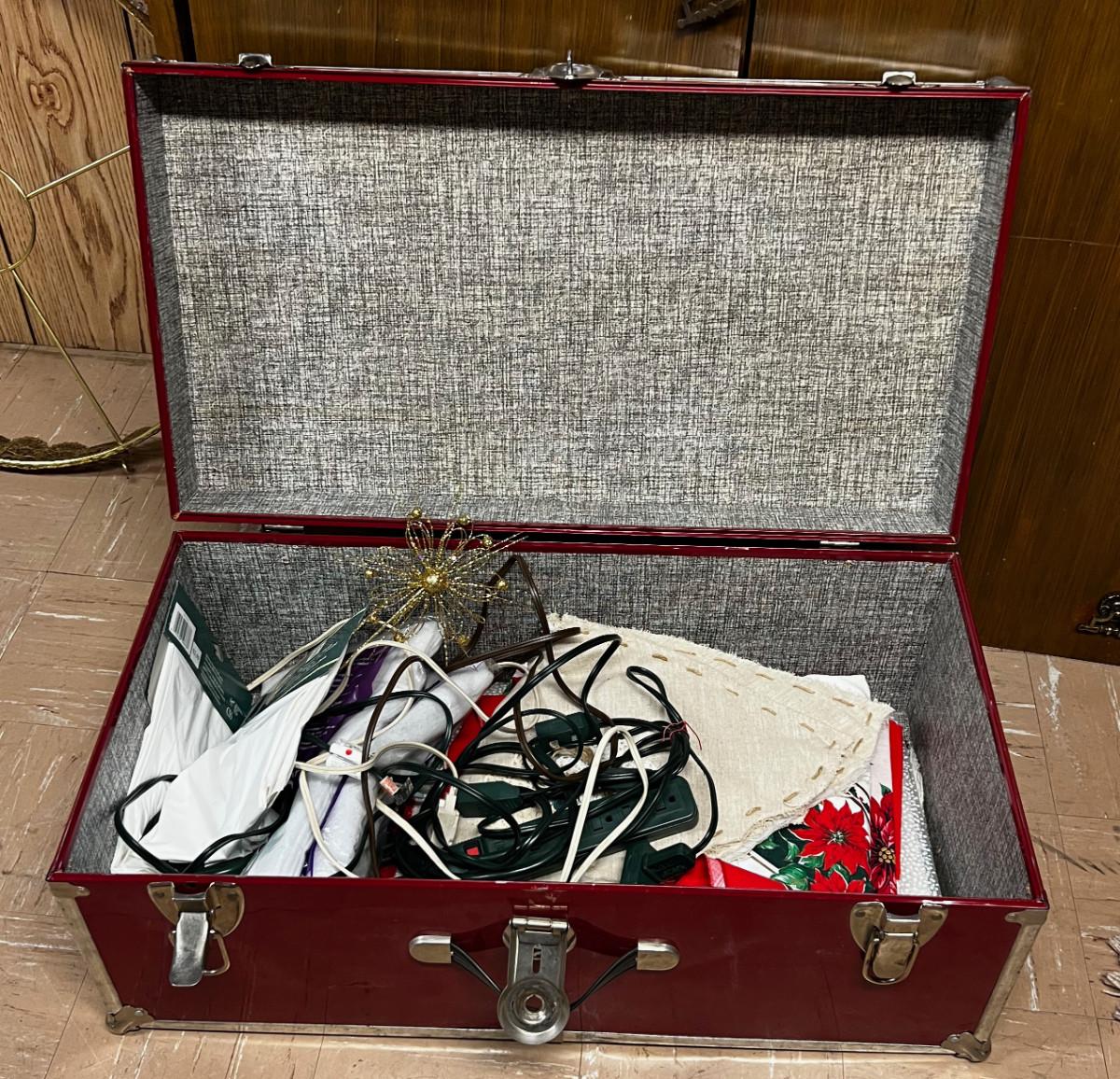 Red Trunk Complete with Christmas Lines and Plug Bars for Xmas Lights