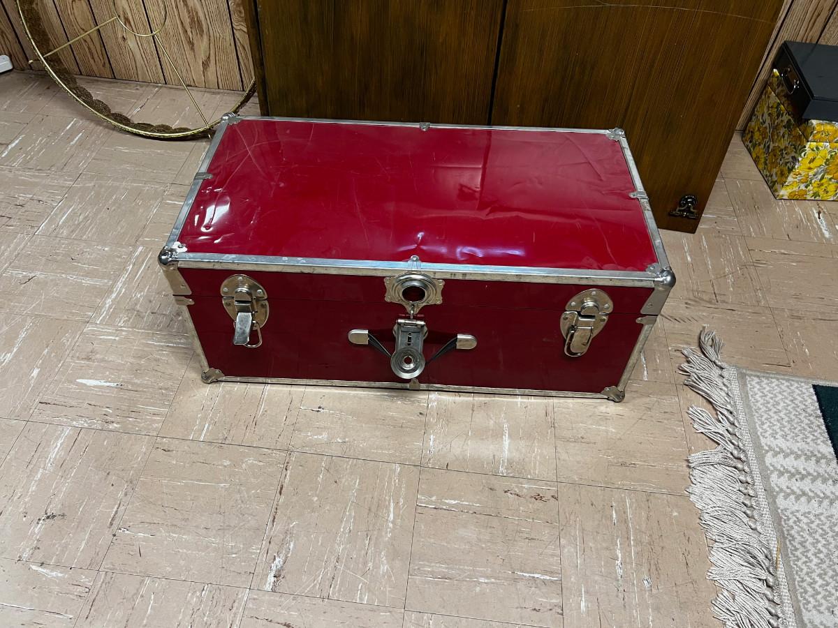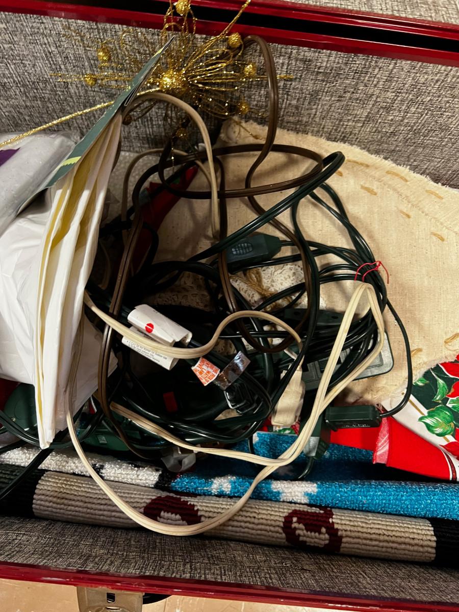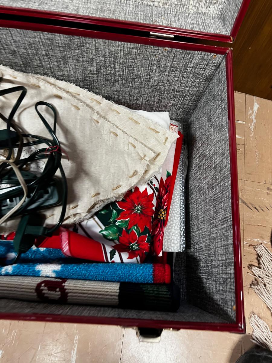 Red Trunk Complete with Christmas Lines and Plug Bars for Xmas Lights
