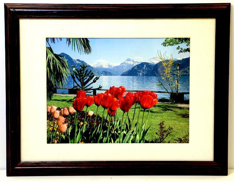 Red Tulips over the Lake and Mountains ART PHOTO in Frame - A-030