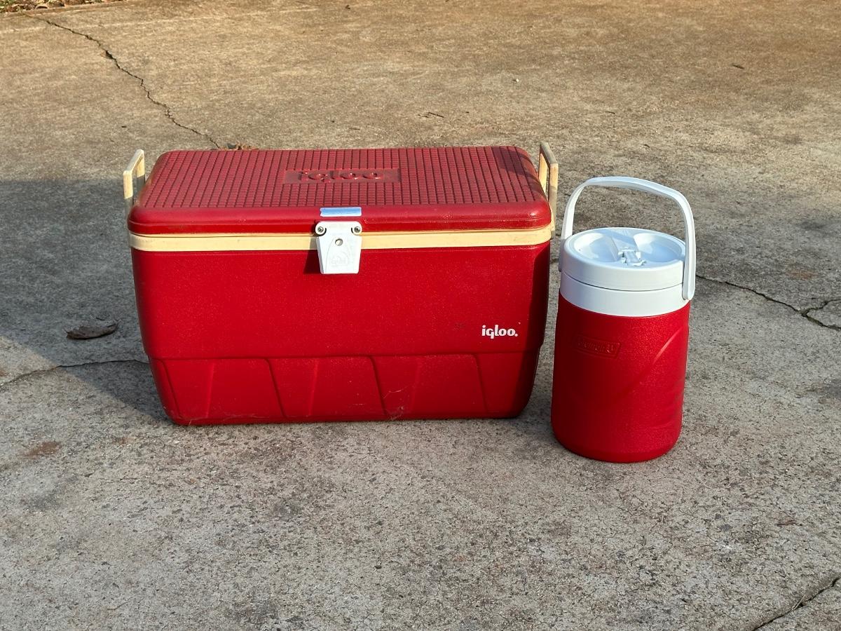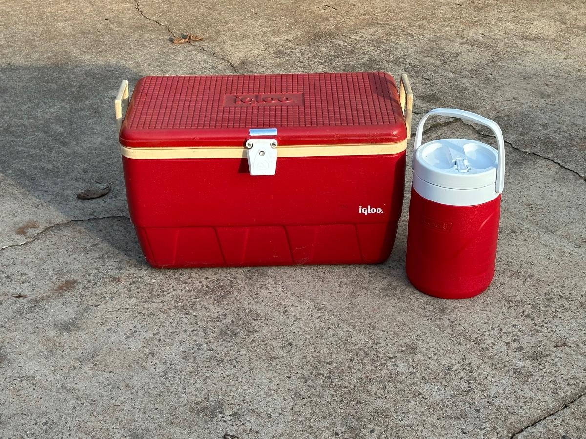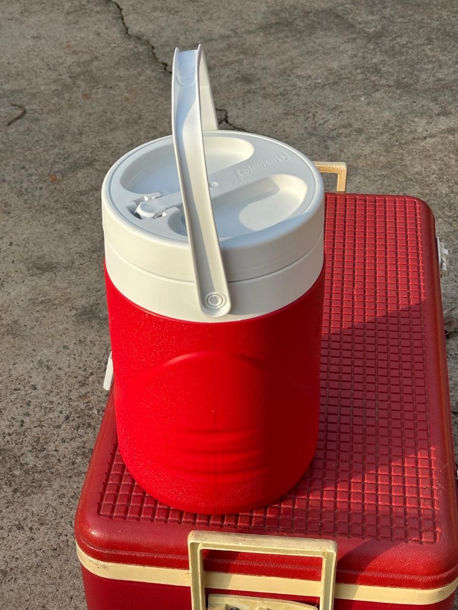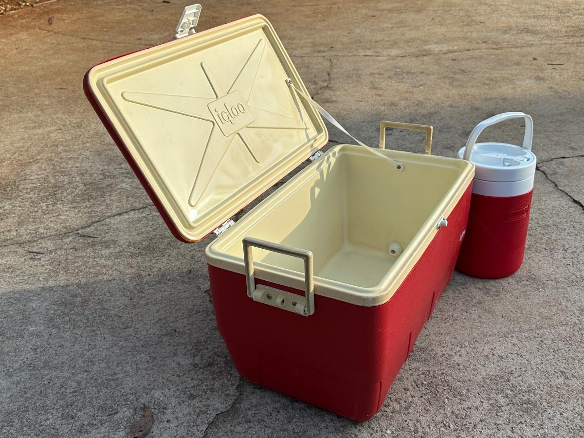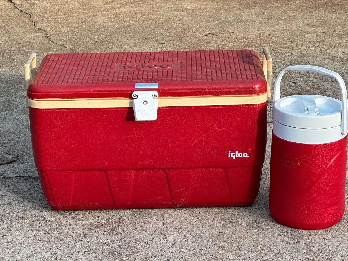Red Vintage Igloo Cooler & Coleman Water Bottle