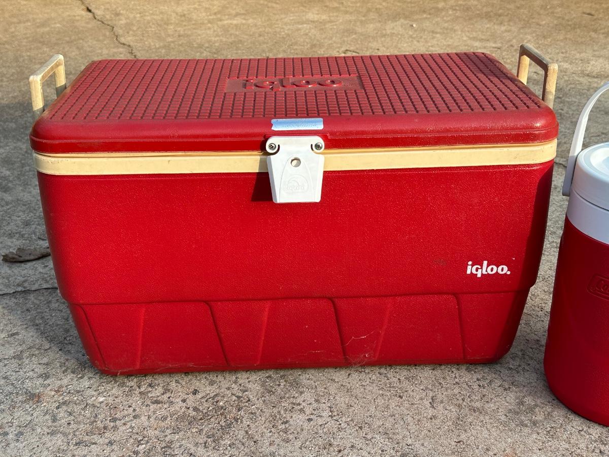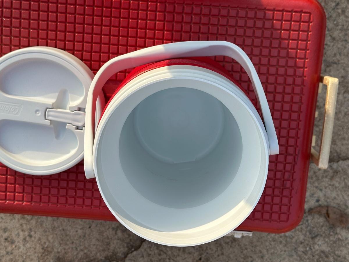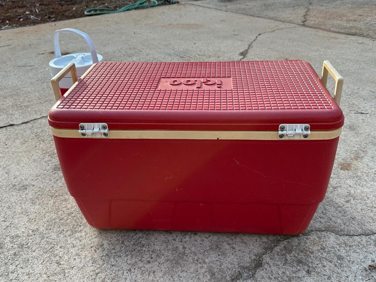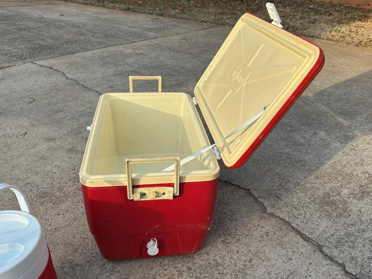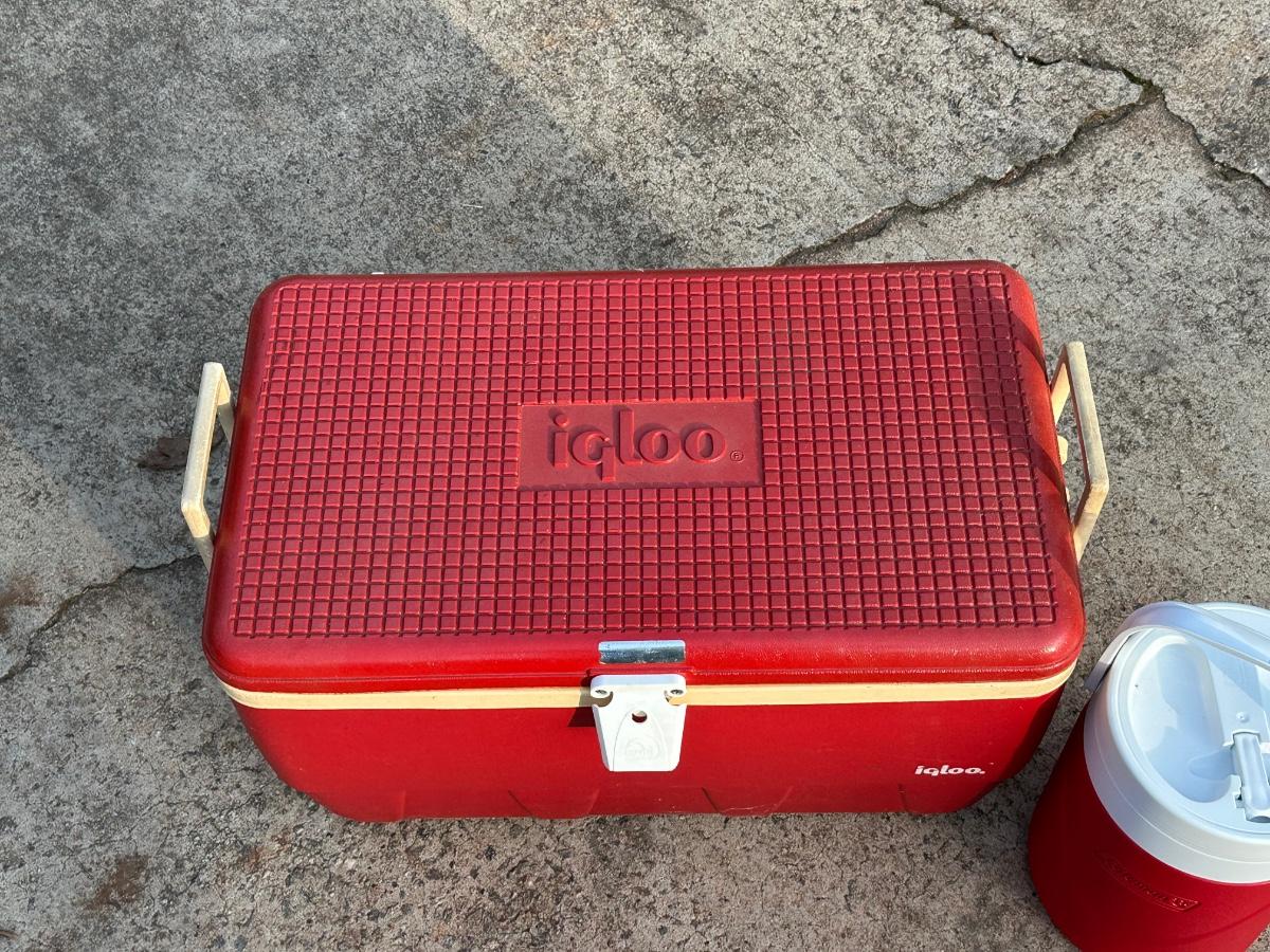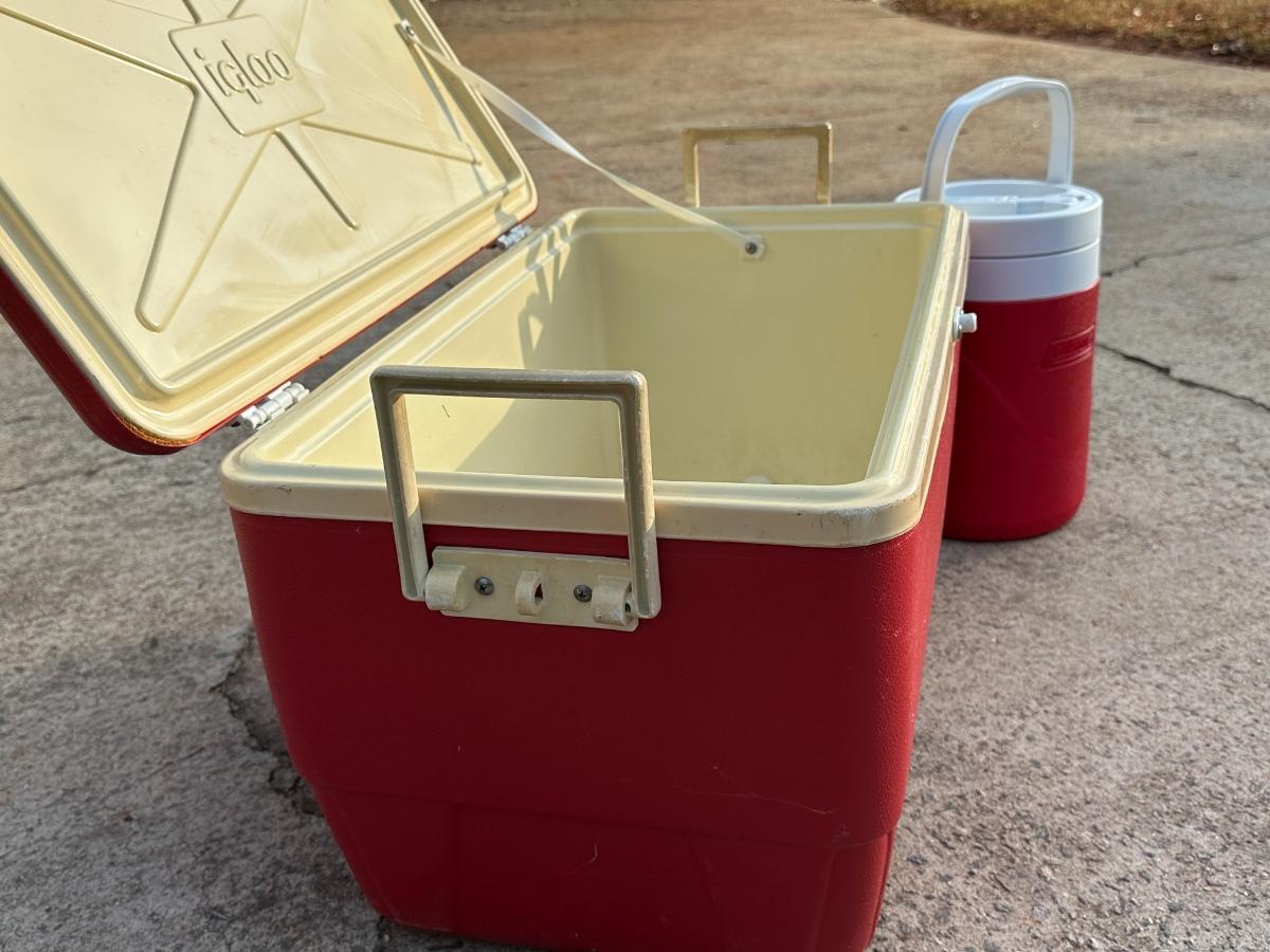 Red Vintage Igloo Cooler & Coleman Water Bottle