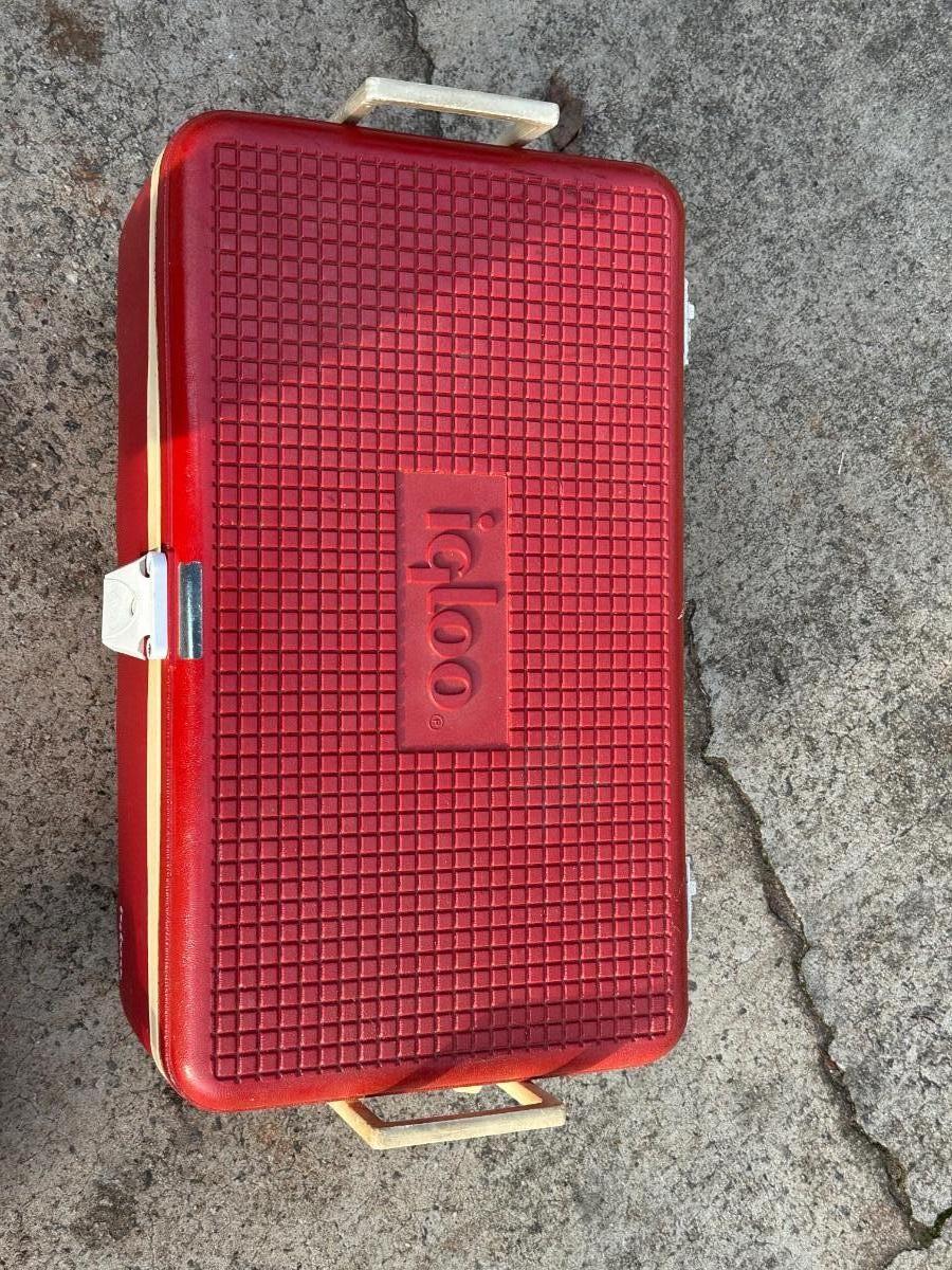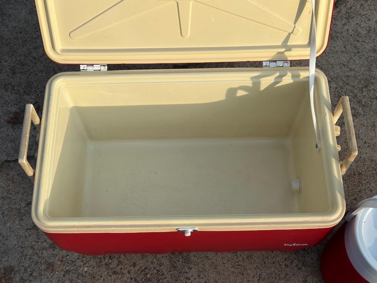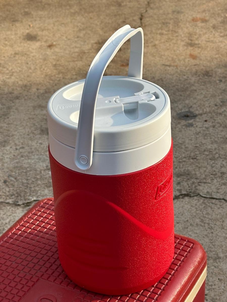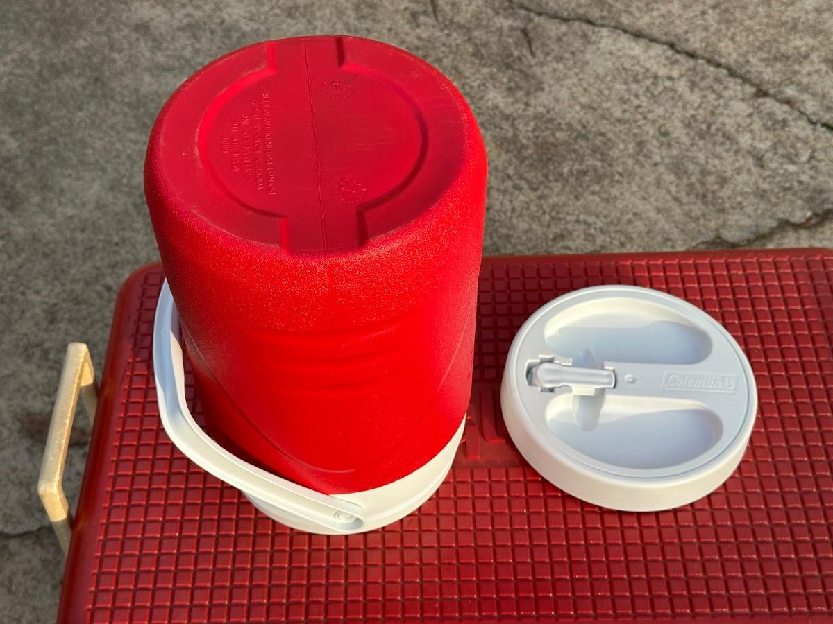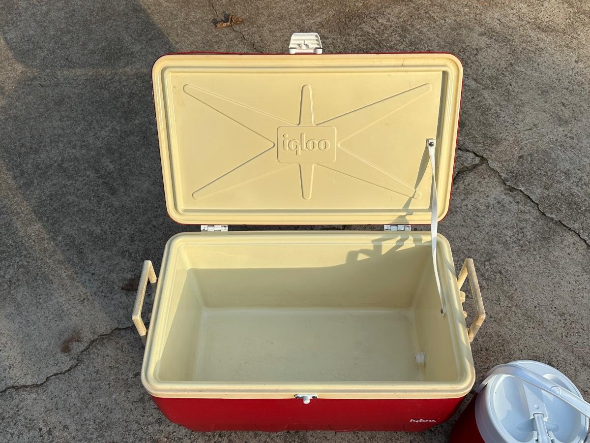 Red Vintage Igloo Cooler & Coleman Water Bottle
