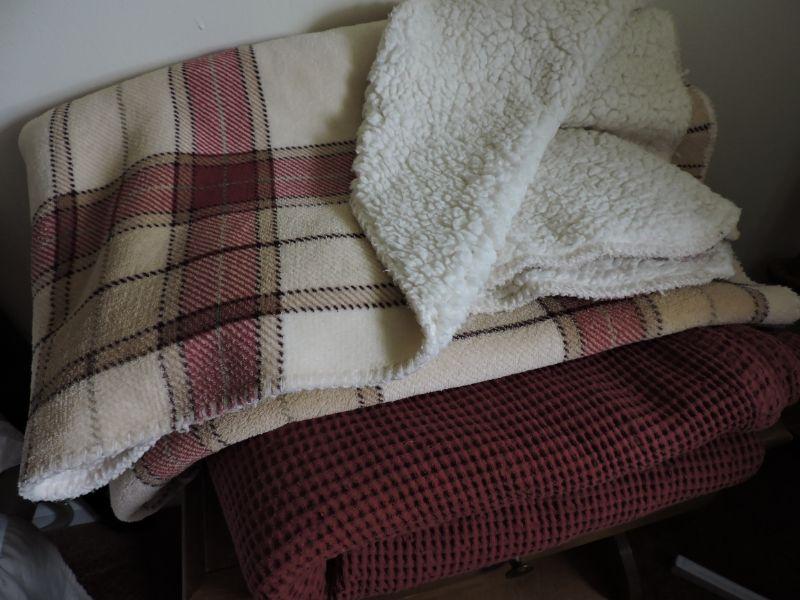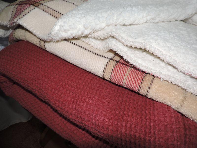 Red Waffle Blanket (Queen) and Plaid Sherpa Throw. Great condition! **Please read Terms and Conditions before placing a bid. Pick up is Thursday, August 15, 2019 from 4pm to 7pm or Sunday, August 18 from 11am-2pm in Mullica Hill. All sales are final. All sales are as is, where is. Please review all photos. Any props included in photos are not included in listing. All measurements are approximate.