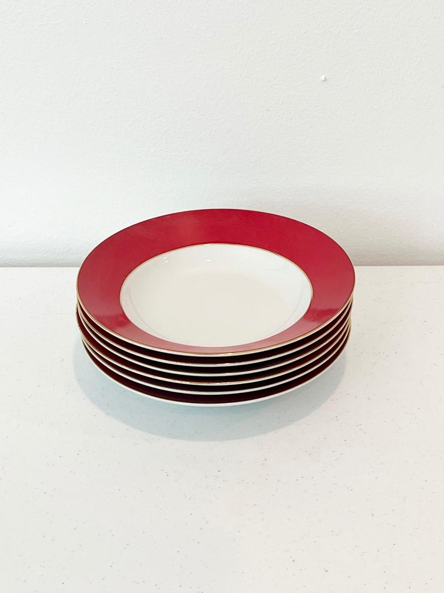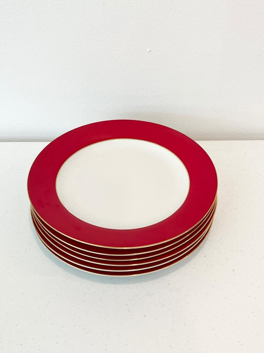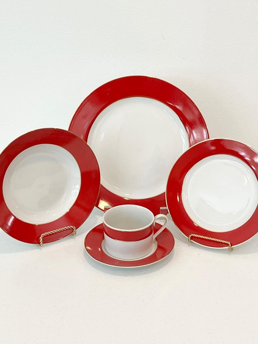 Red & White Dinnerware With Gold Trim ~ 5-Piece Service for 6