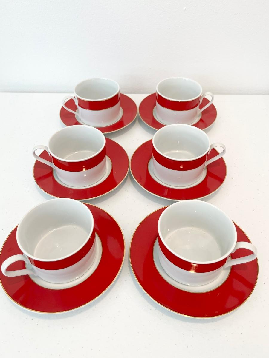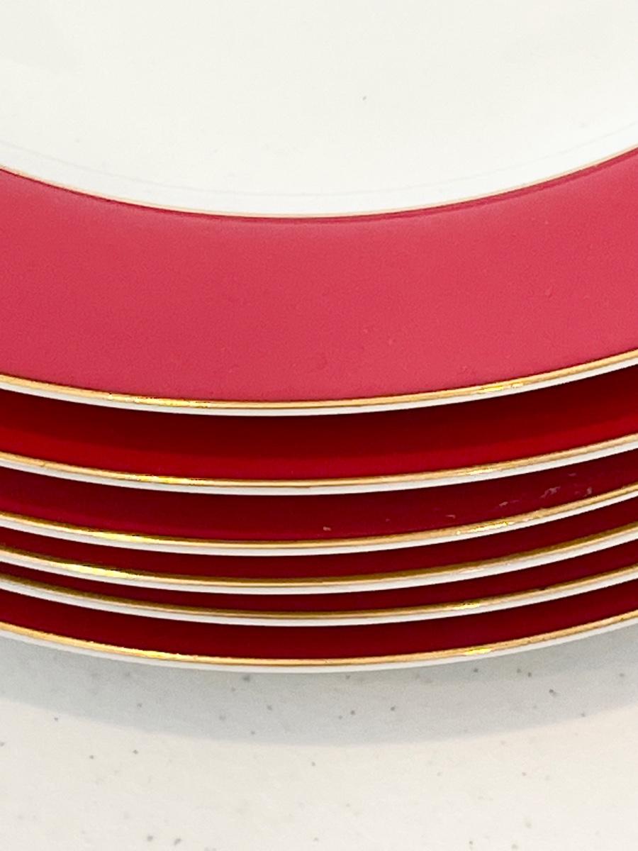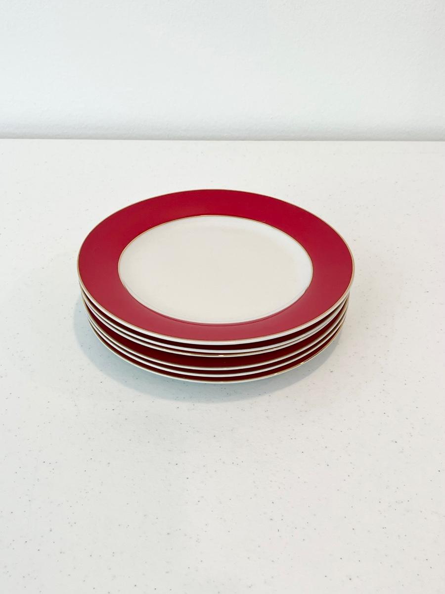 Red & White Dinnerware With Gold Trim ~ 5-Piece Service for 6