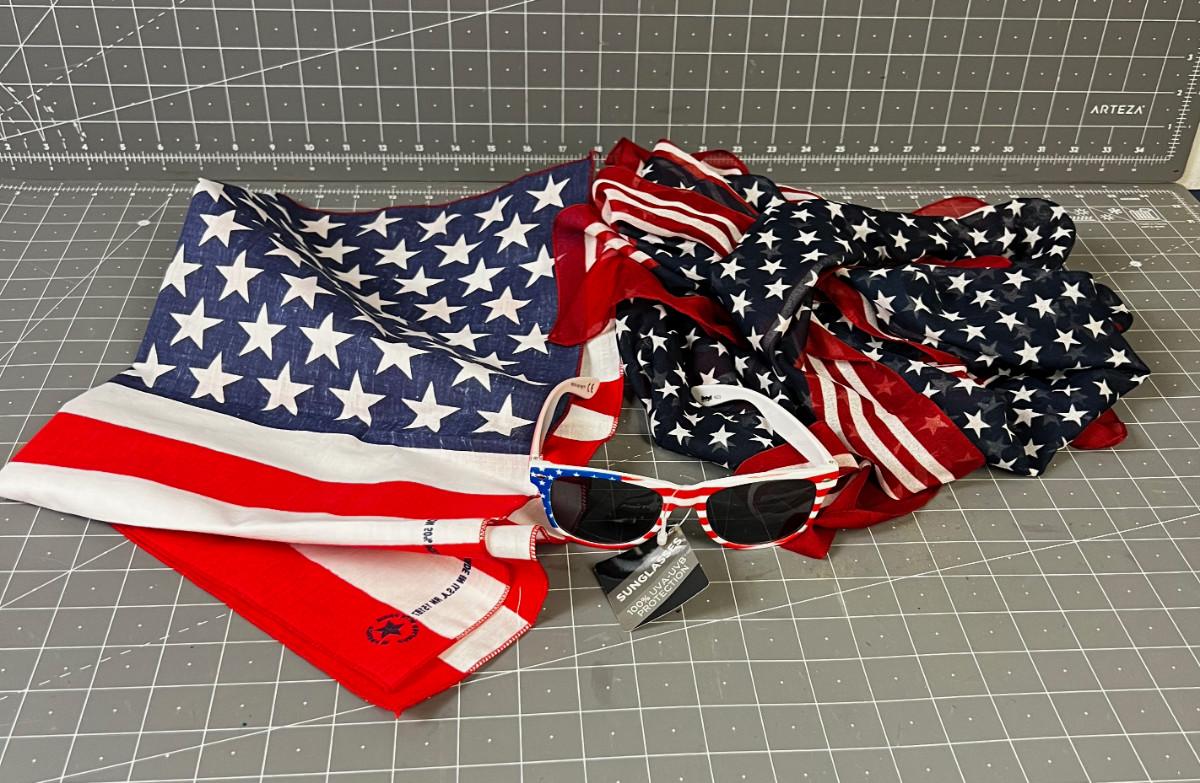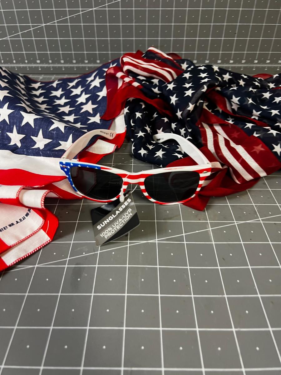 Can't go wrong here. 2 nice scarfs, a kerchief and sun glasses. Perfect attire for the next Protest or Rally?!?!