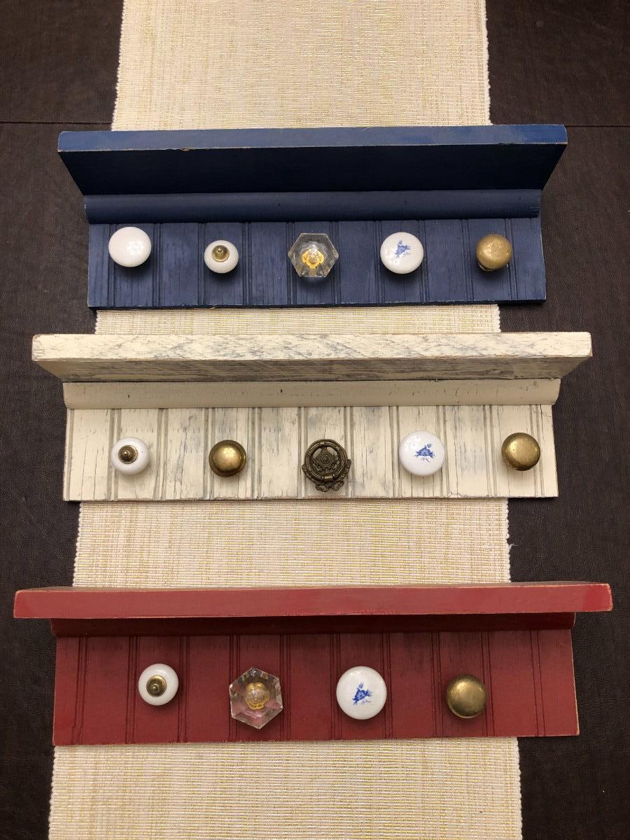 RED, WHITE, AND BLUE SHELVES W/ KNOBS