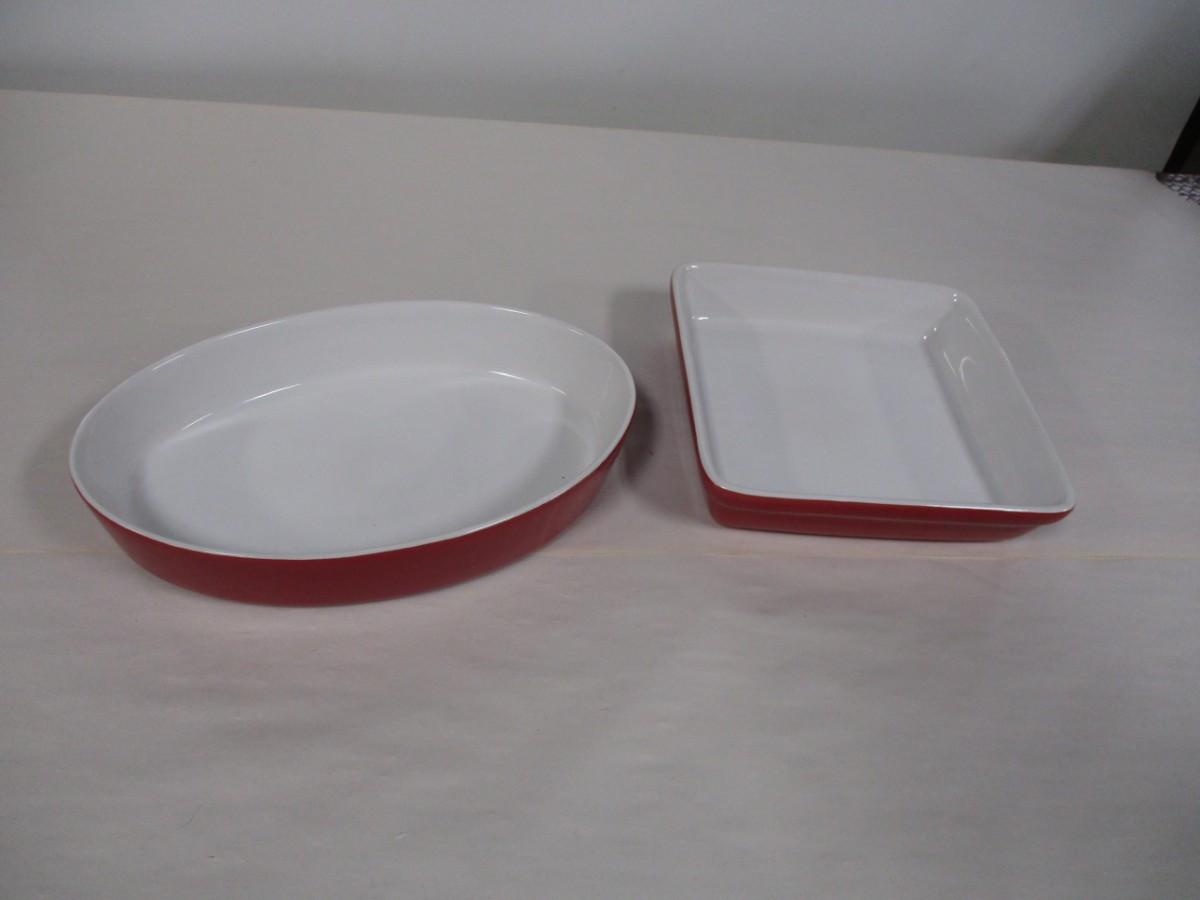 Red & White Bakeware 3 Square & 2 Oval