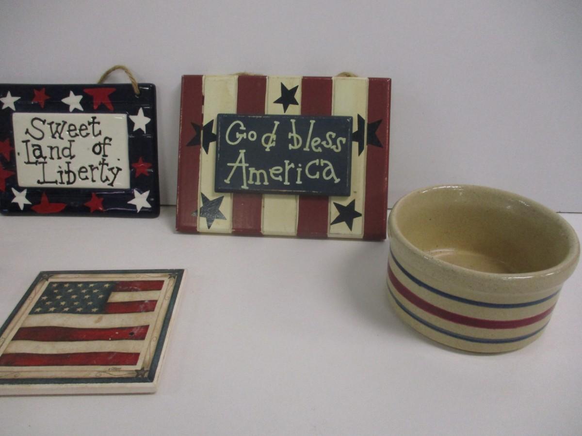 Red White & Blue American Decorations Roseville Pottery Bowl