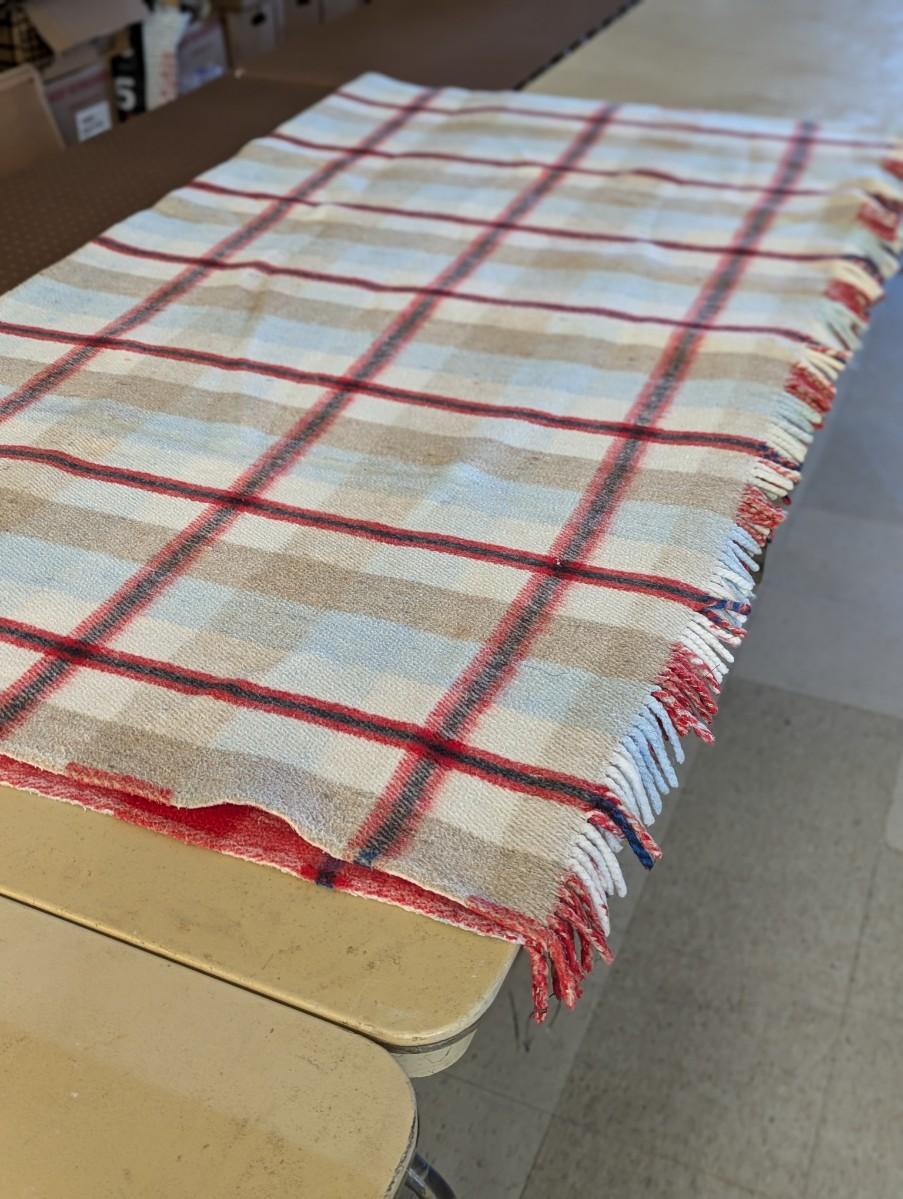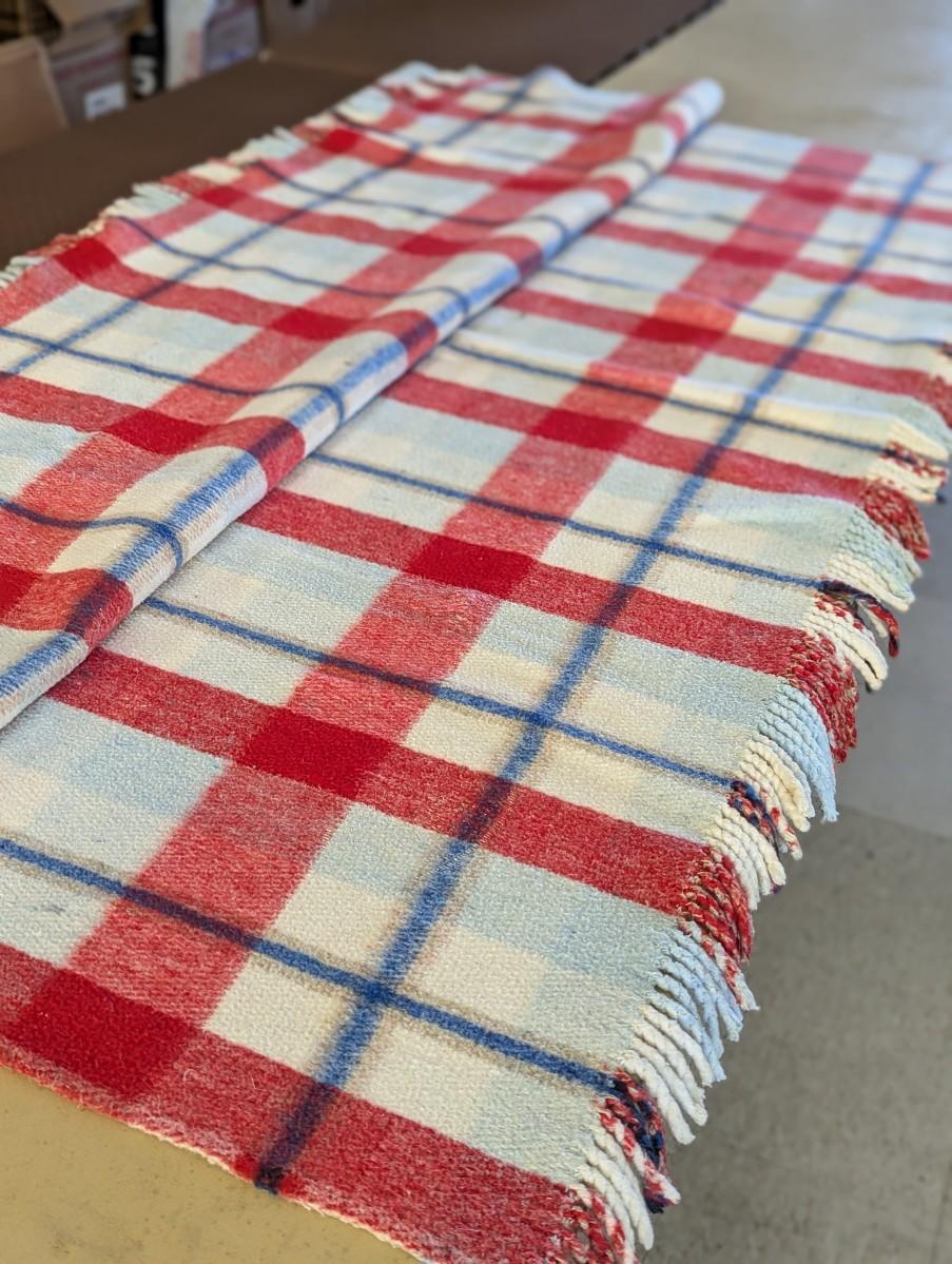 Red White & Blue Plaid Blanket Approx 77 3/4" x 88"