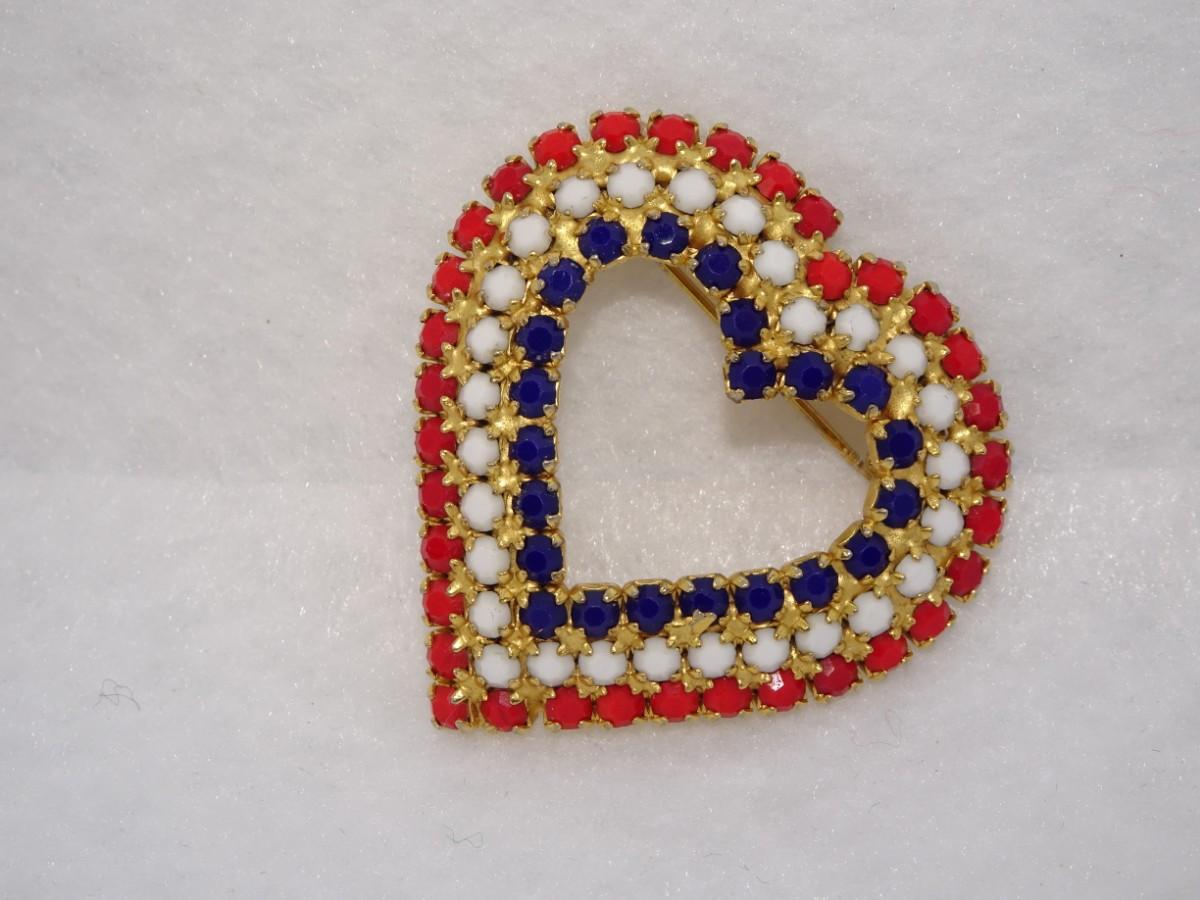 Red, White Blue Rhinestone Patriotic Heart Brooch