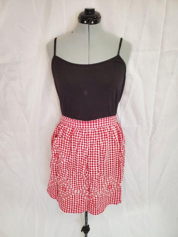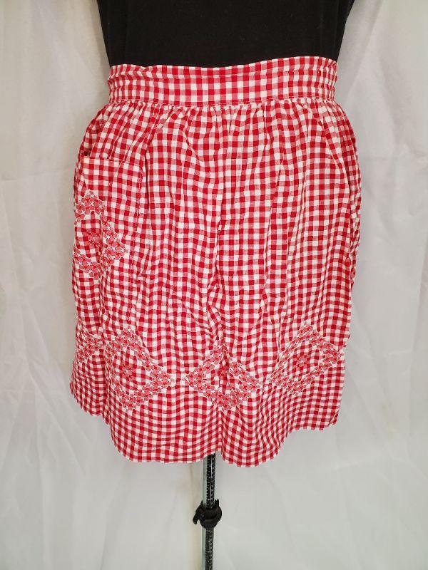 Cute red and white apron with a vintage feel, see photos for embroidery. Good condition!!
