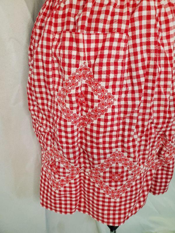RED & WHITE CHECKERED EMBROIDERED APRON