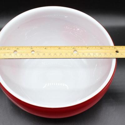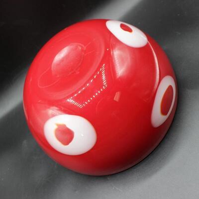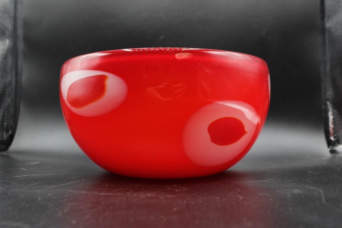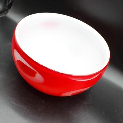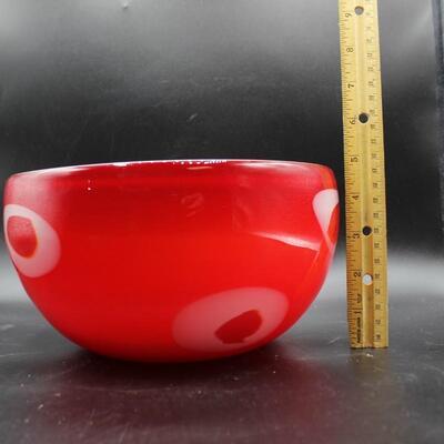 Red & white Murano like bowl. About 9" diameter. Blown art glass piece, displays great.