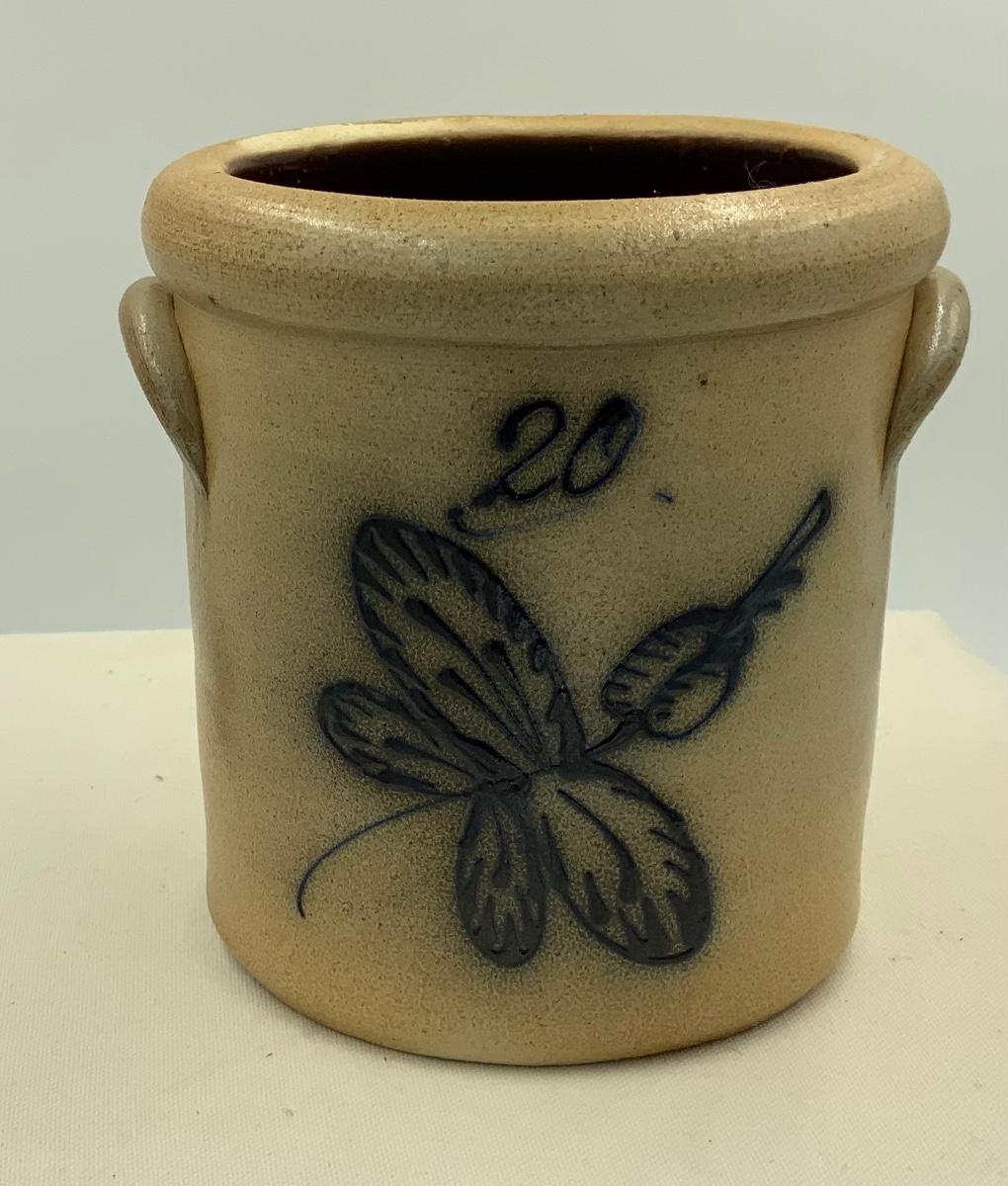 Miniature 20 gallon crock with cobalt pattern in perfect condition! Rest piece to add to your collection! Measures 4” x 4”.