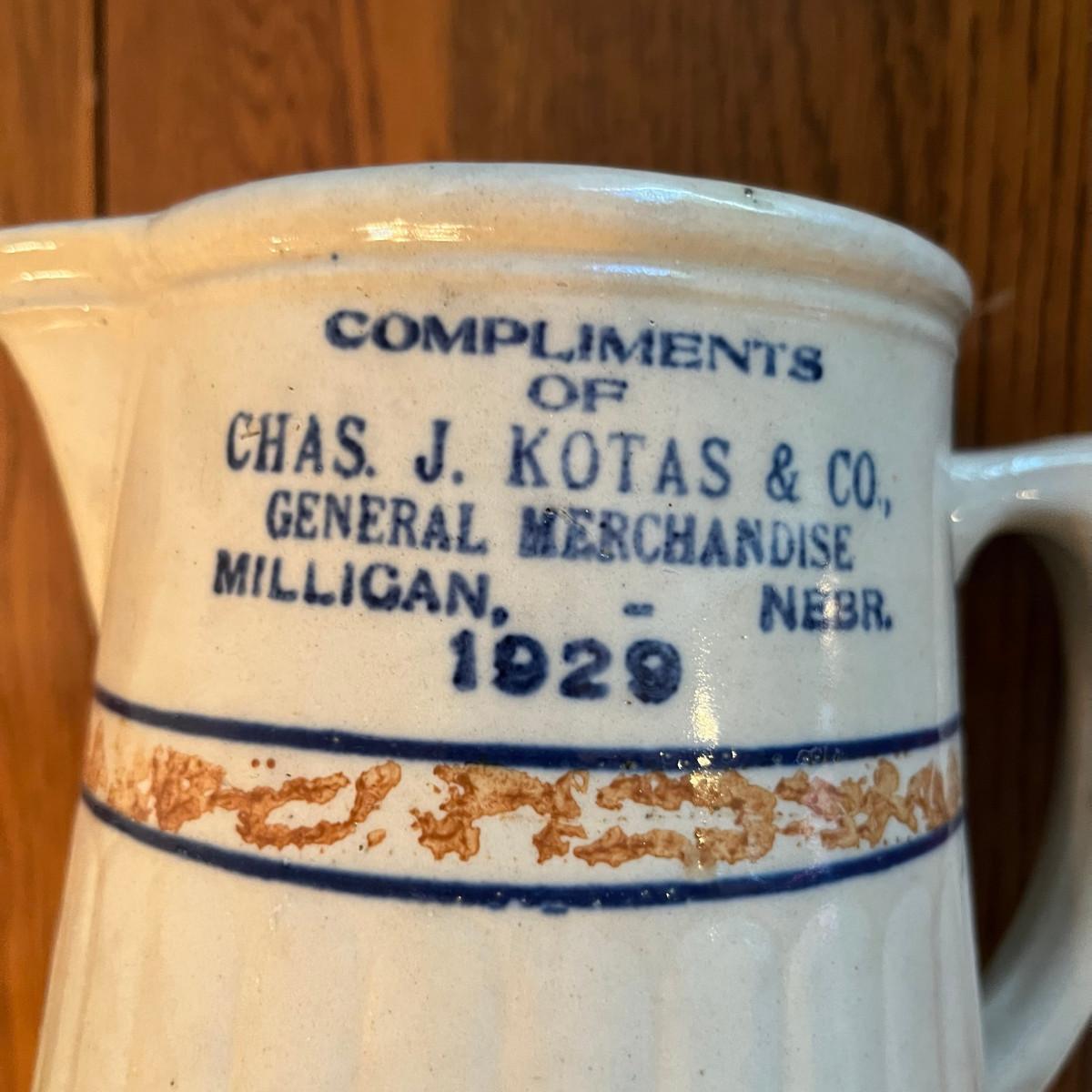 RED WING Stoneware Spatter Band Advertising Pitcher