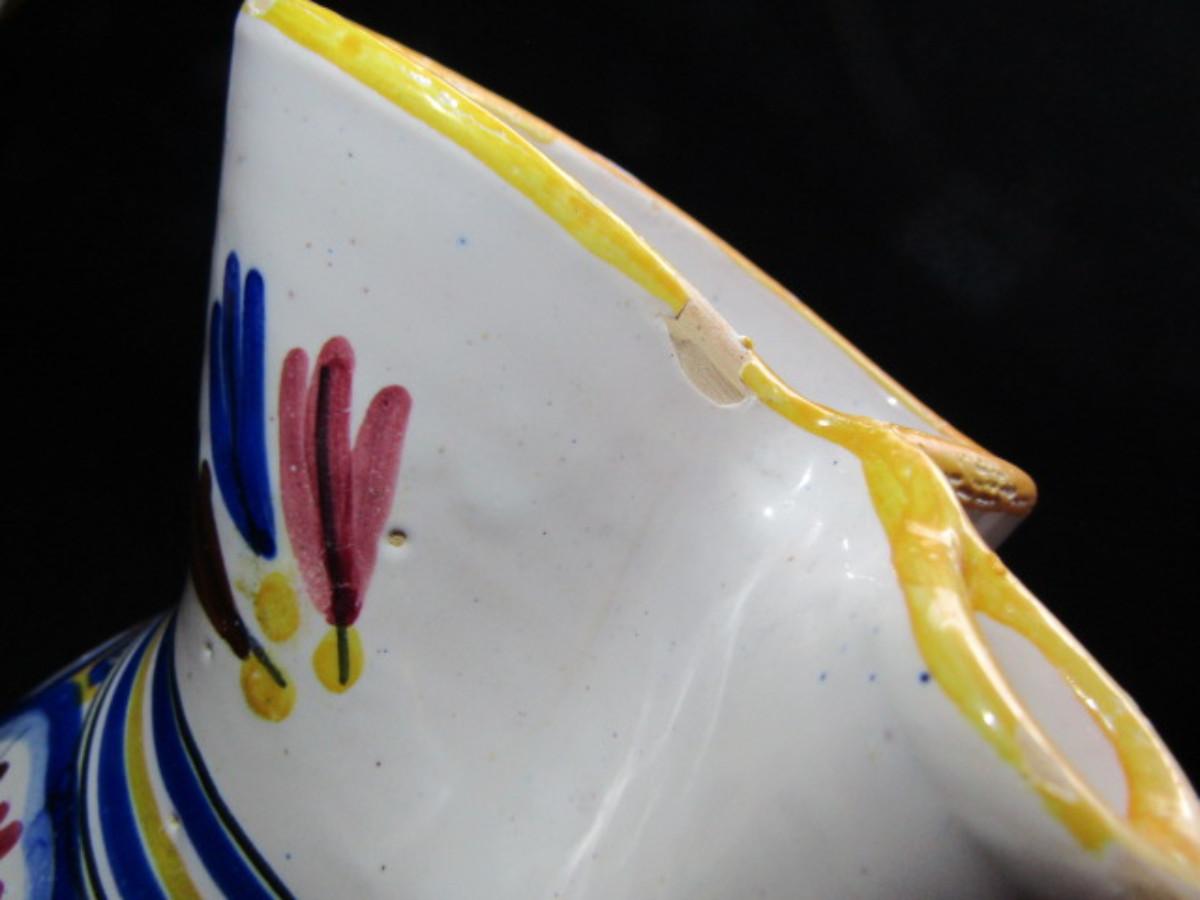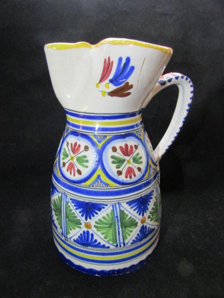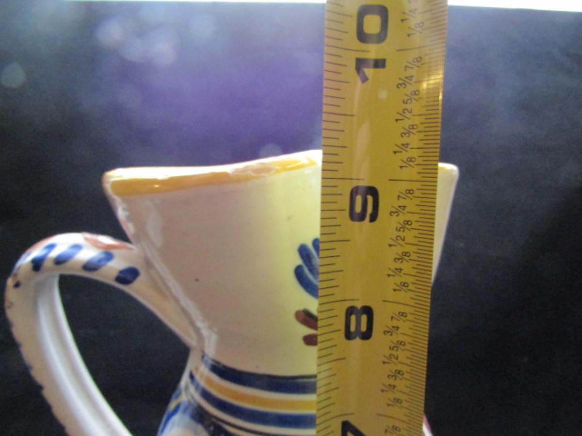 Hand Painted Pitcher with Pinched Spout- Signed (#290). Please see all pictures- small chip on rim.
