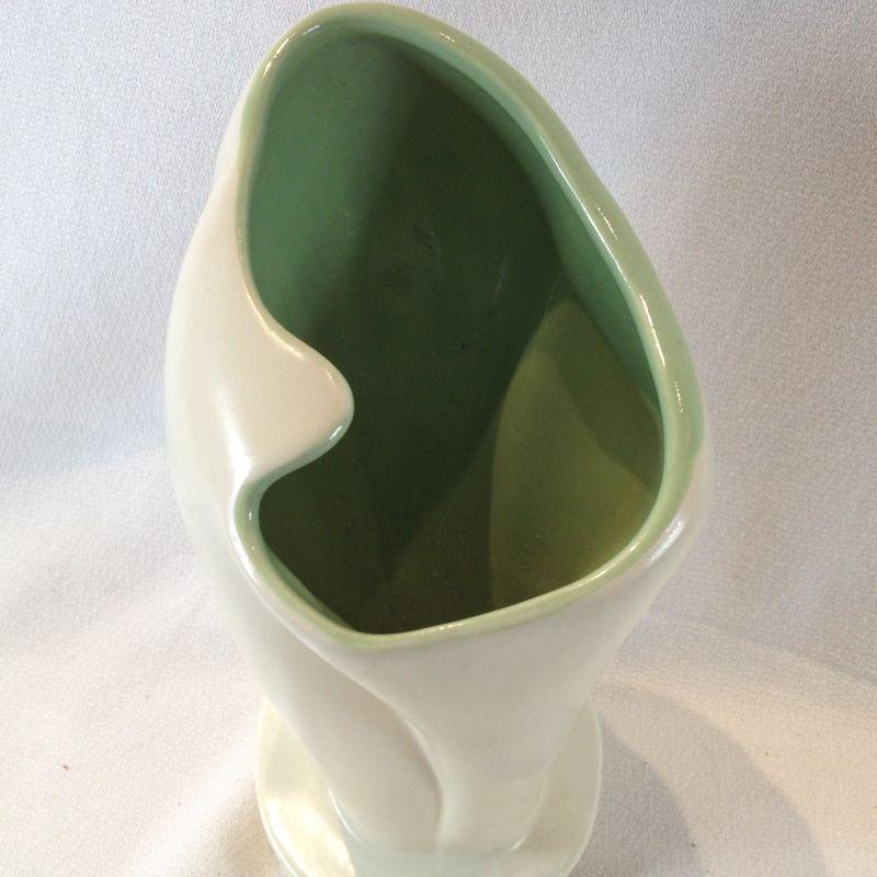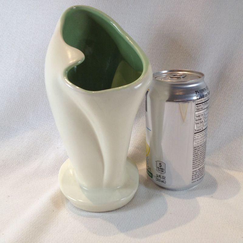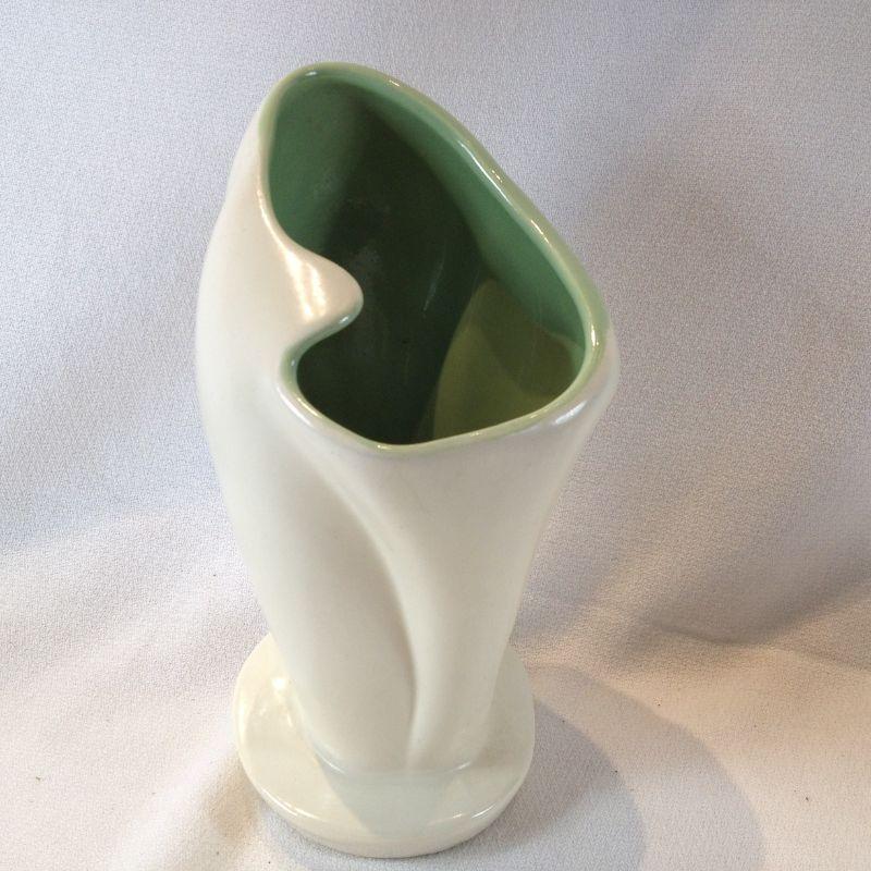 This stylish vase is straight out of the 50s. Very California-style. Red Wing pottery refers to American stoneware, pottery, or dinnerware items made by a company initially set up in Red Wing, Minnesota, in 1861 by German immigrant John Paul, which changed its names several times until finally settling on Red Wing Potteries, Inc. in 1936.