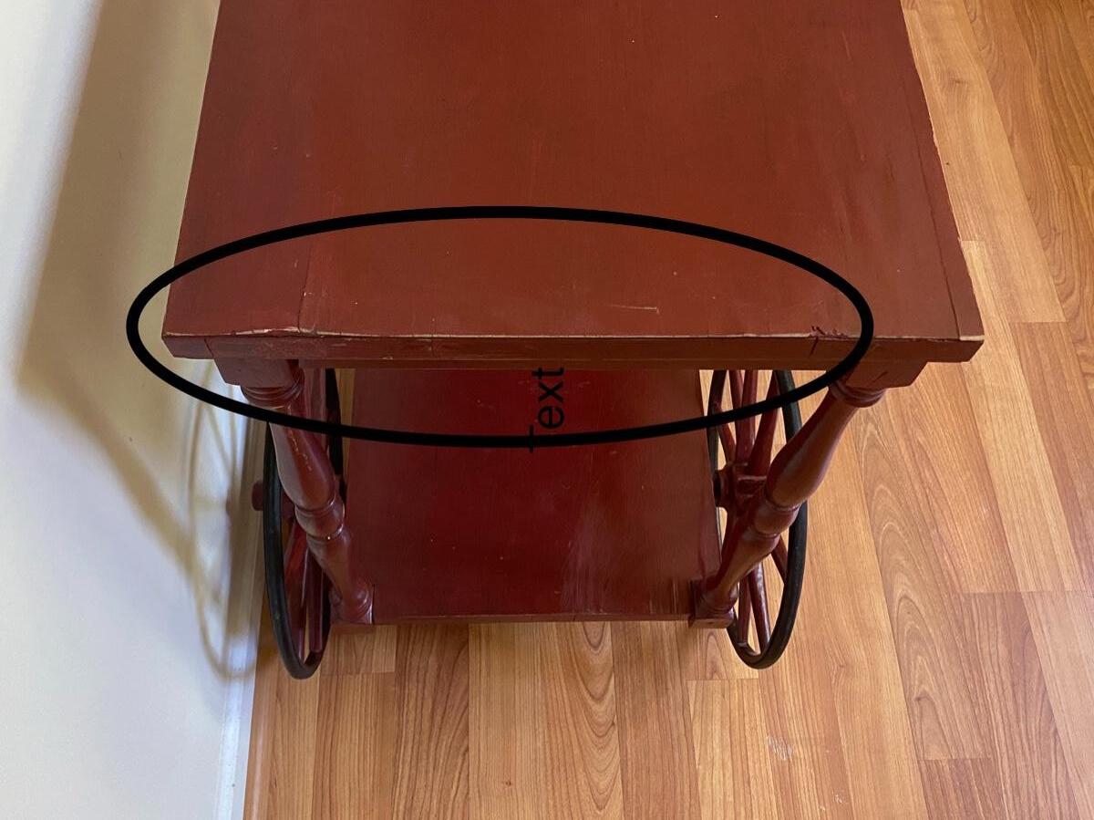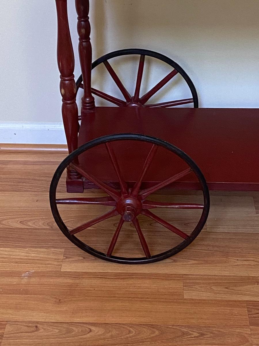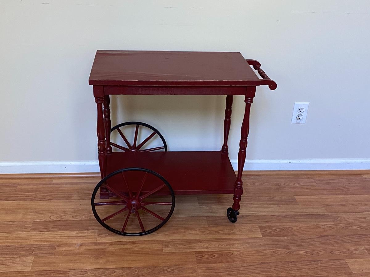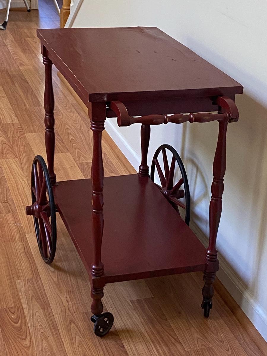 Red Wood Serving Trolley on Wheels