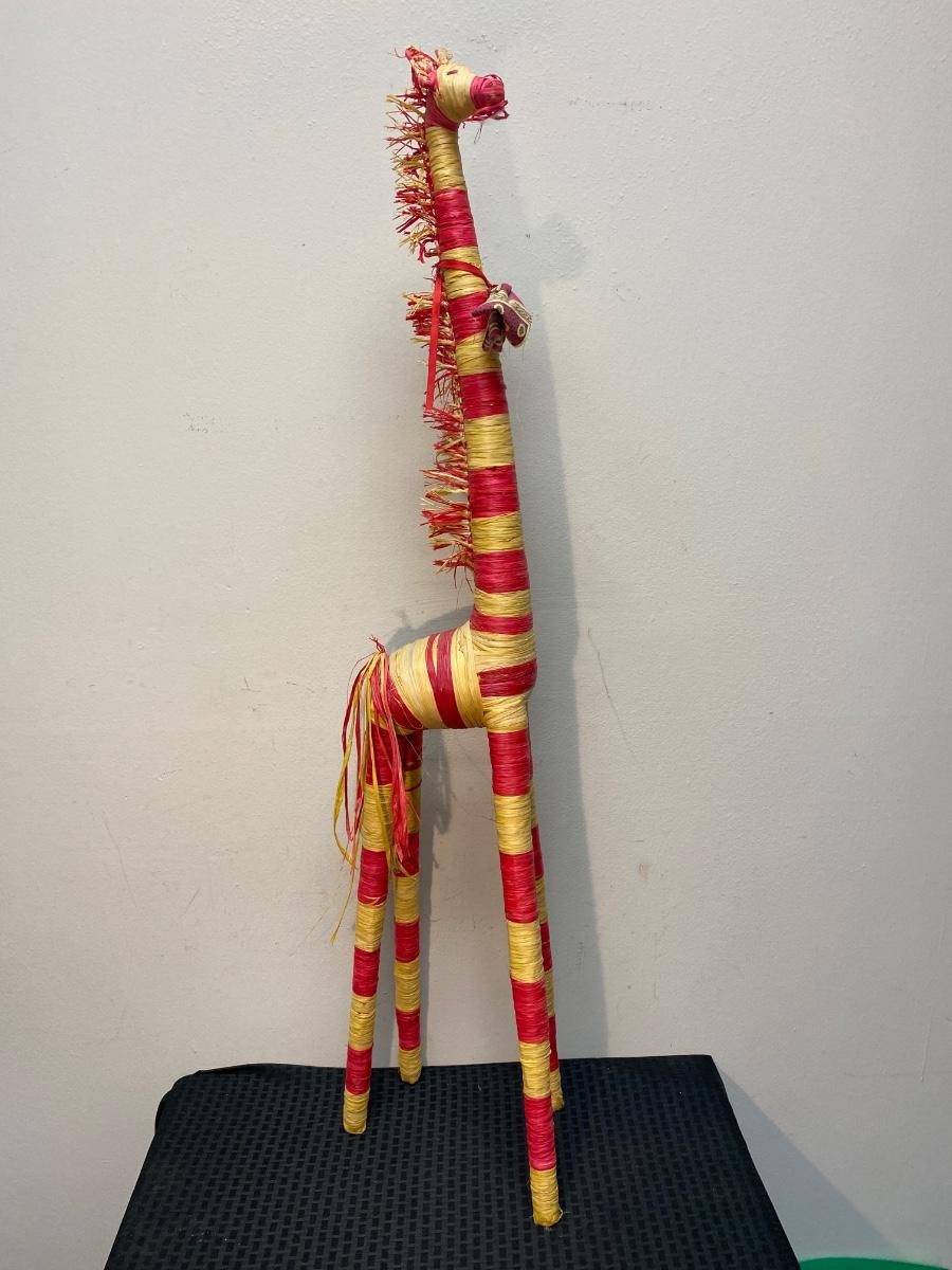 Red & Yellow Rafia Wrapped Giraffe Figurine Statue