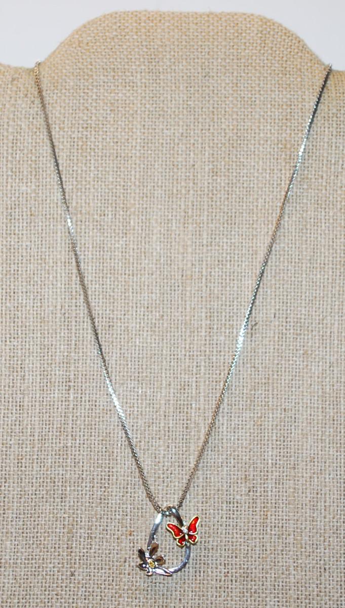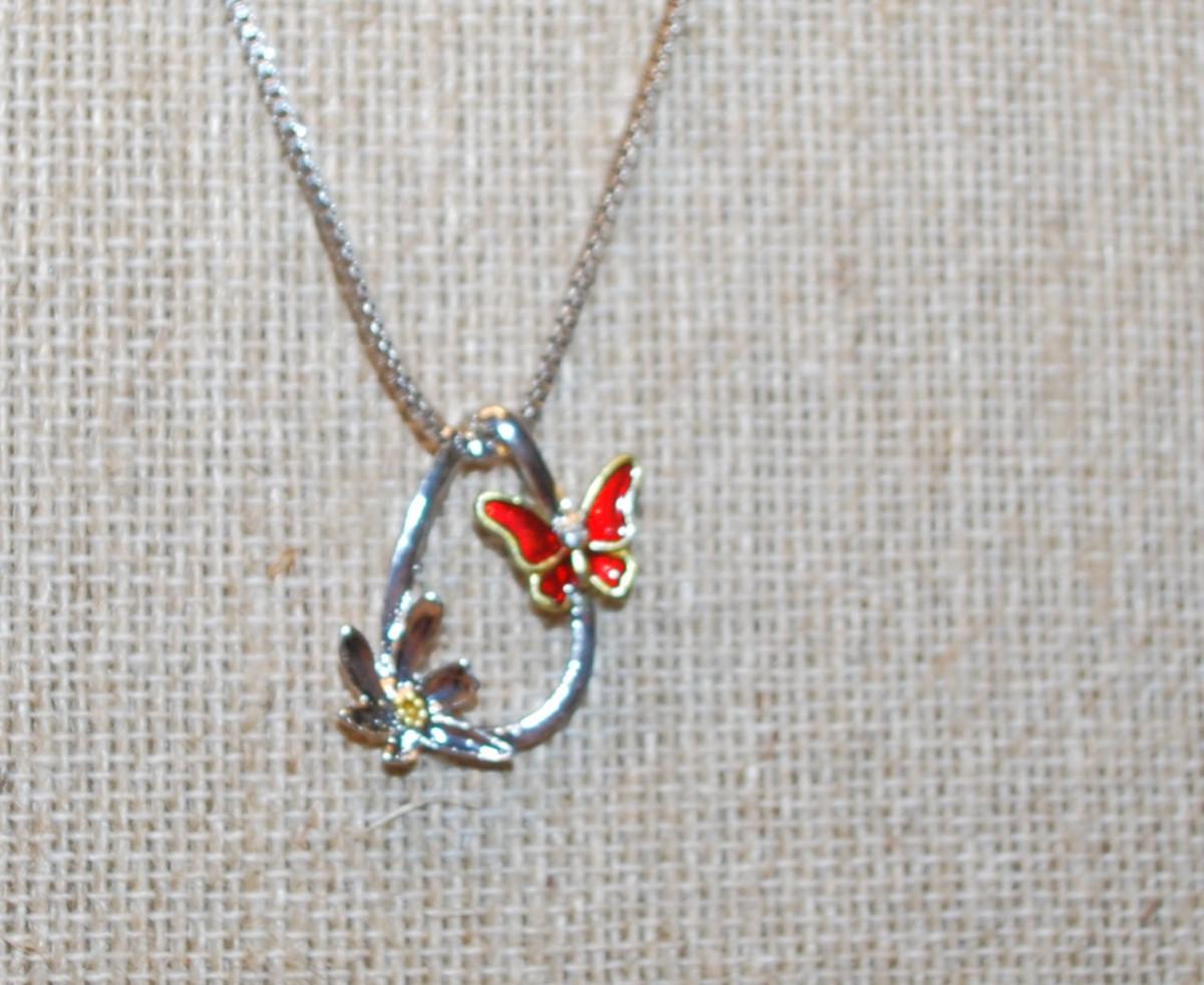 Red/Gold & Silver Butterflies PENDANT ( ¾" x ¾") on a Silver Tone Necklace Chain 16" L