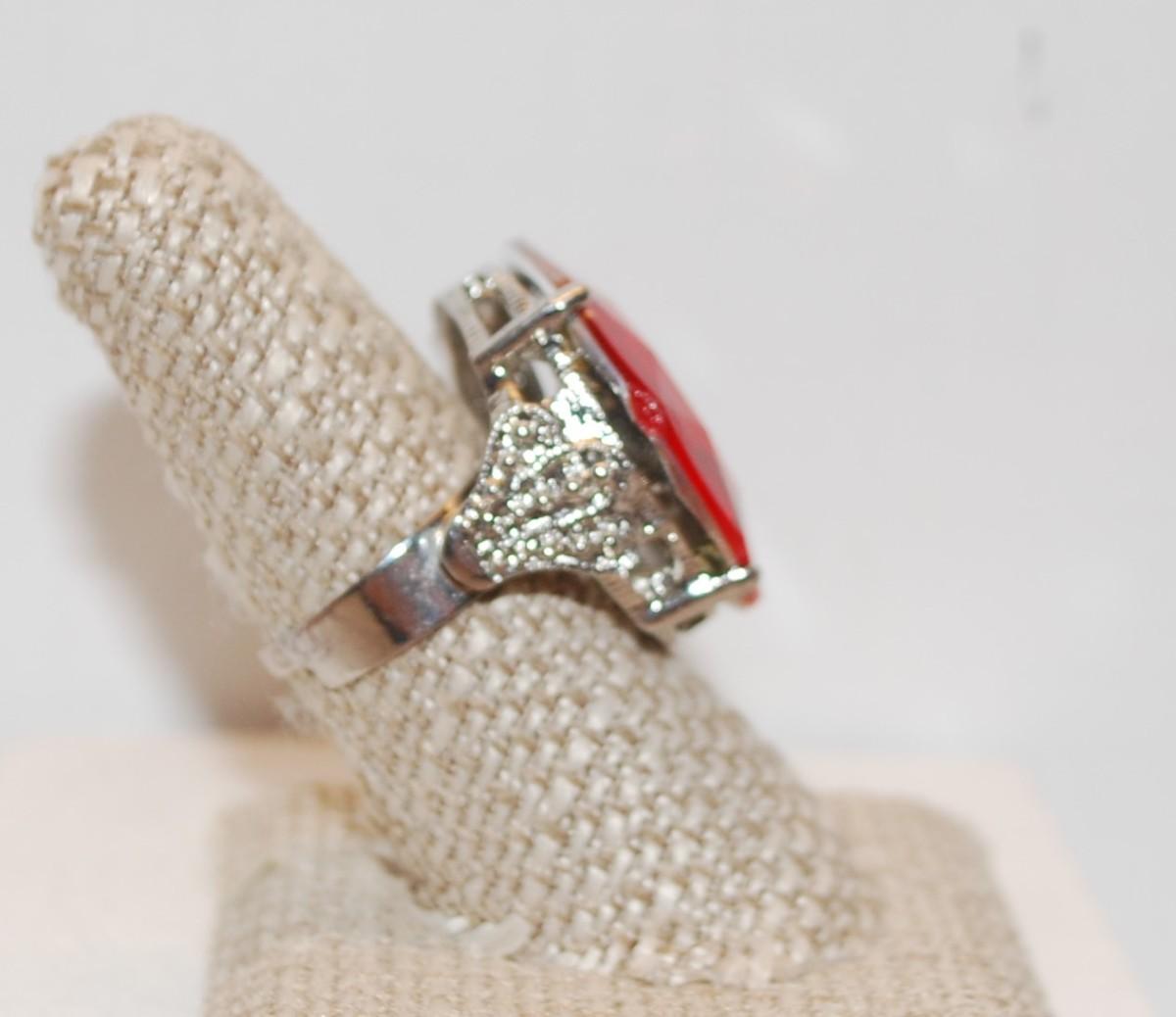 Red-Orange Faceted Large Stone Ring with Split Band Size 9