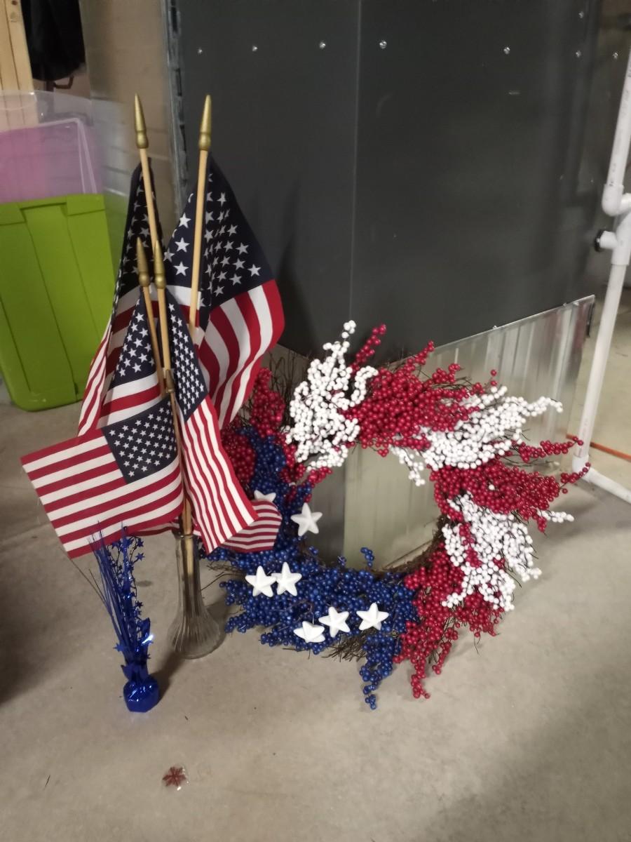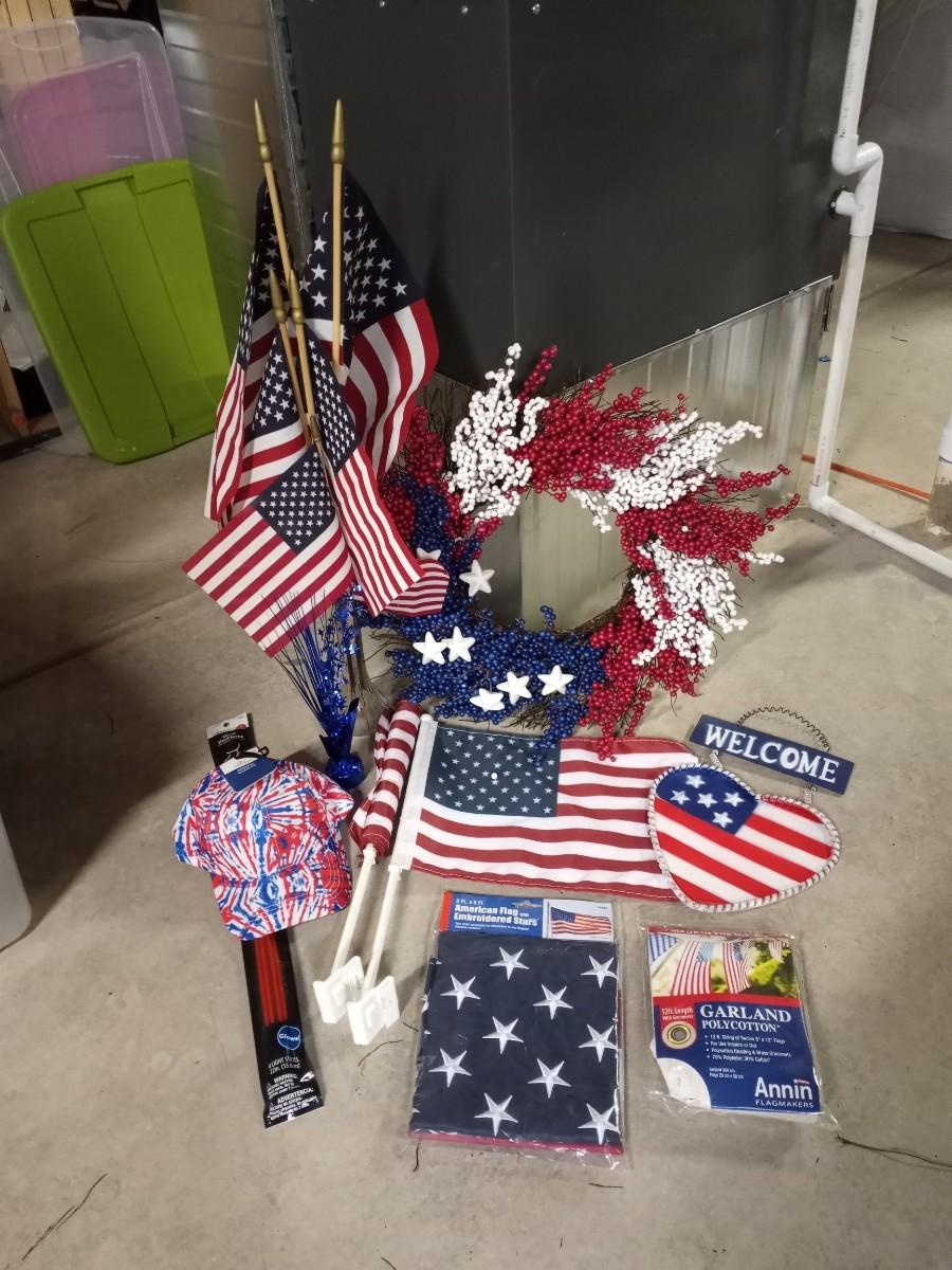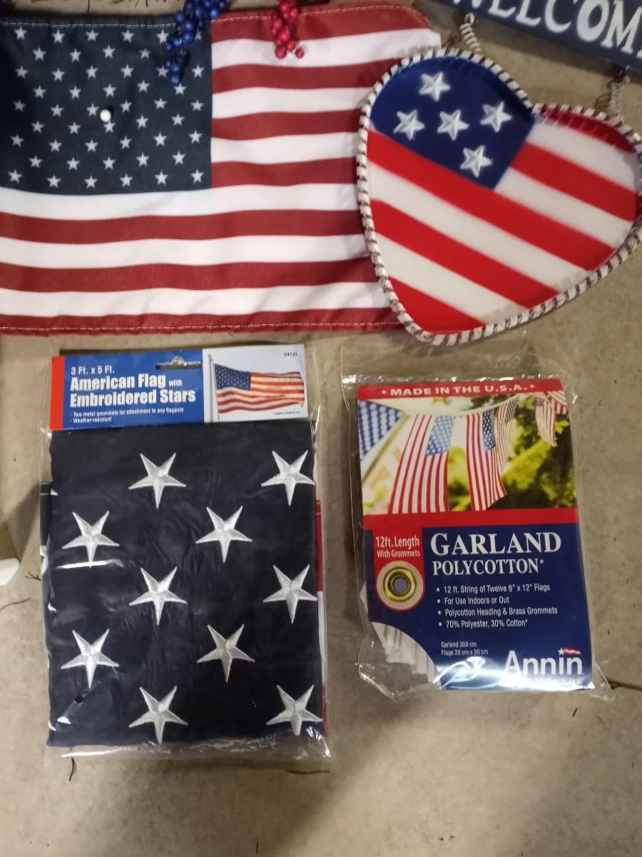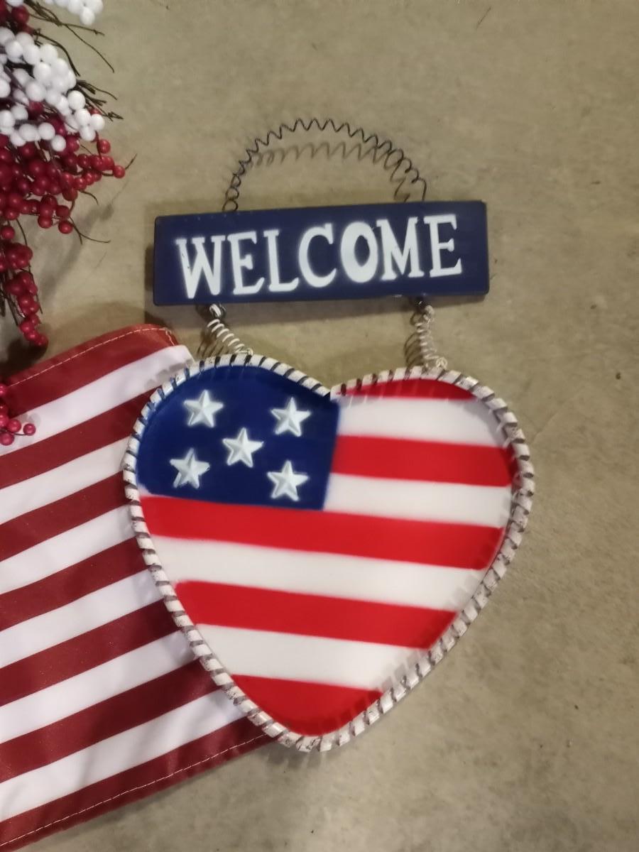 RED/WHITE/BLUE HEART FLAG WELCOME SIGN-NEW CAP-WREATH-FLAGS AND MORE
