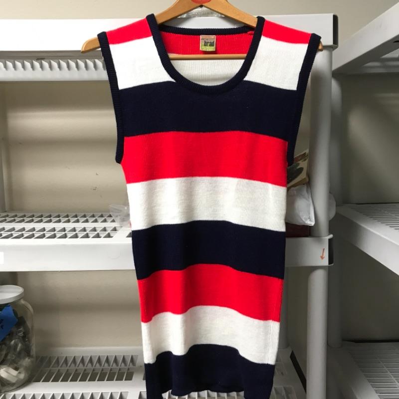 Red/White/Navy Blue Horizontal Striped Sweater Vest MED