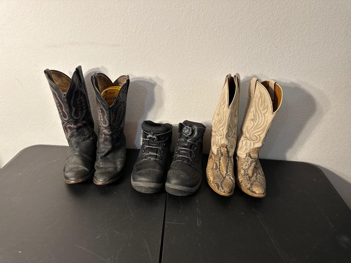 REDWING WORK BOOTS 10.5, TWO PAIRS OF WESTERN BOOTS