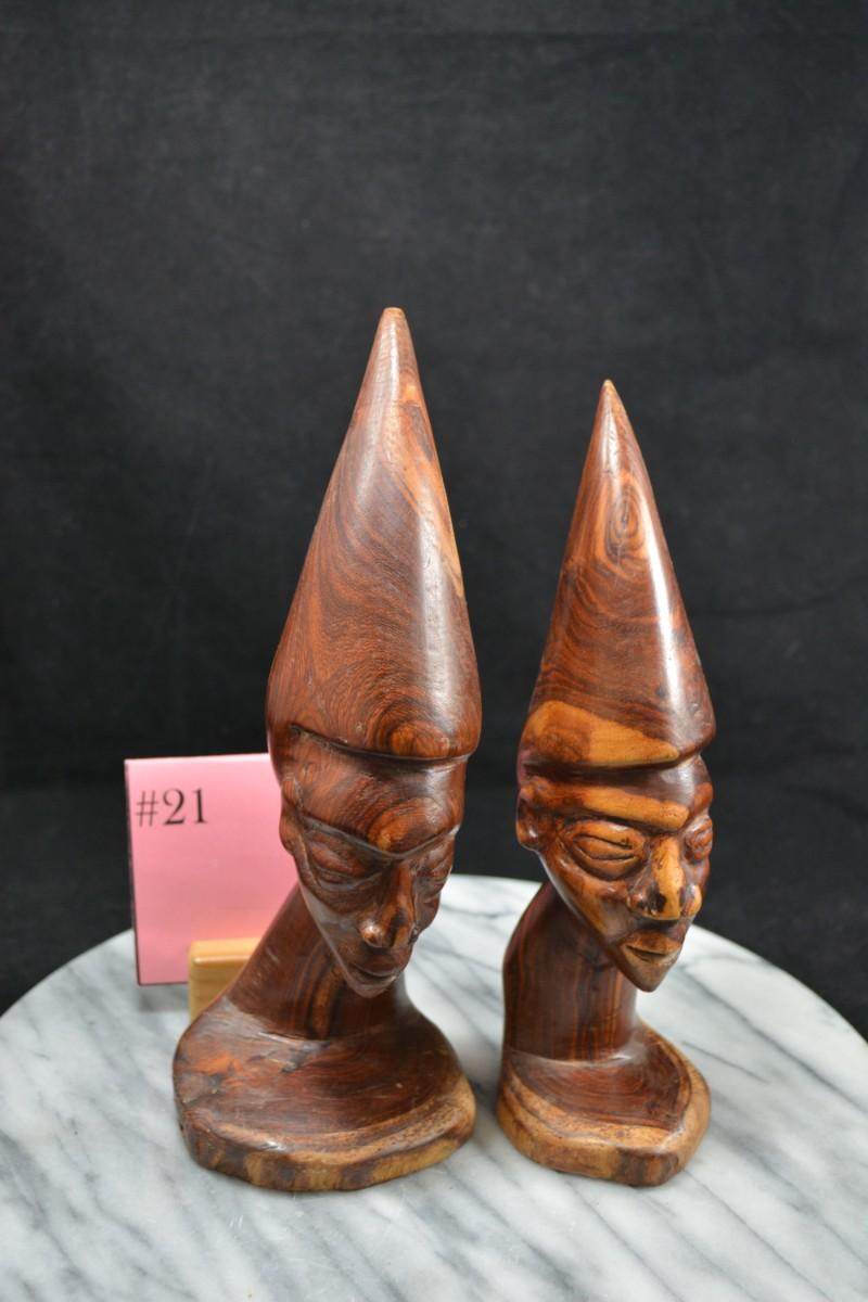 Redwood Hand Carved Tribal Statues 9.25”x8.5”