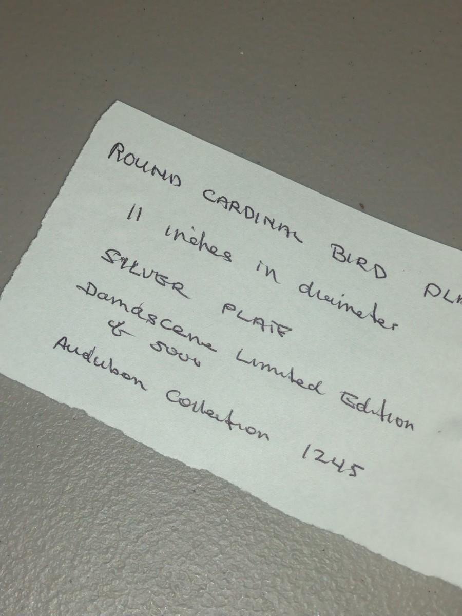 Reed and Barton Cardinal Silverplate Limited Edition of 5000 Damascene Collector Plate