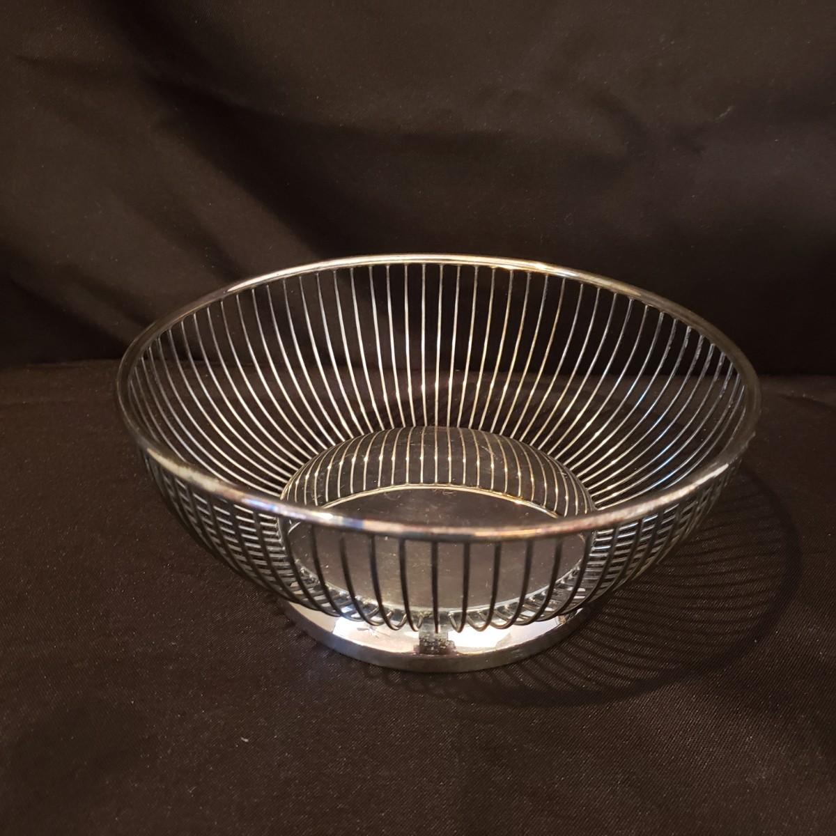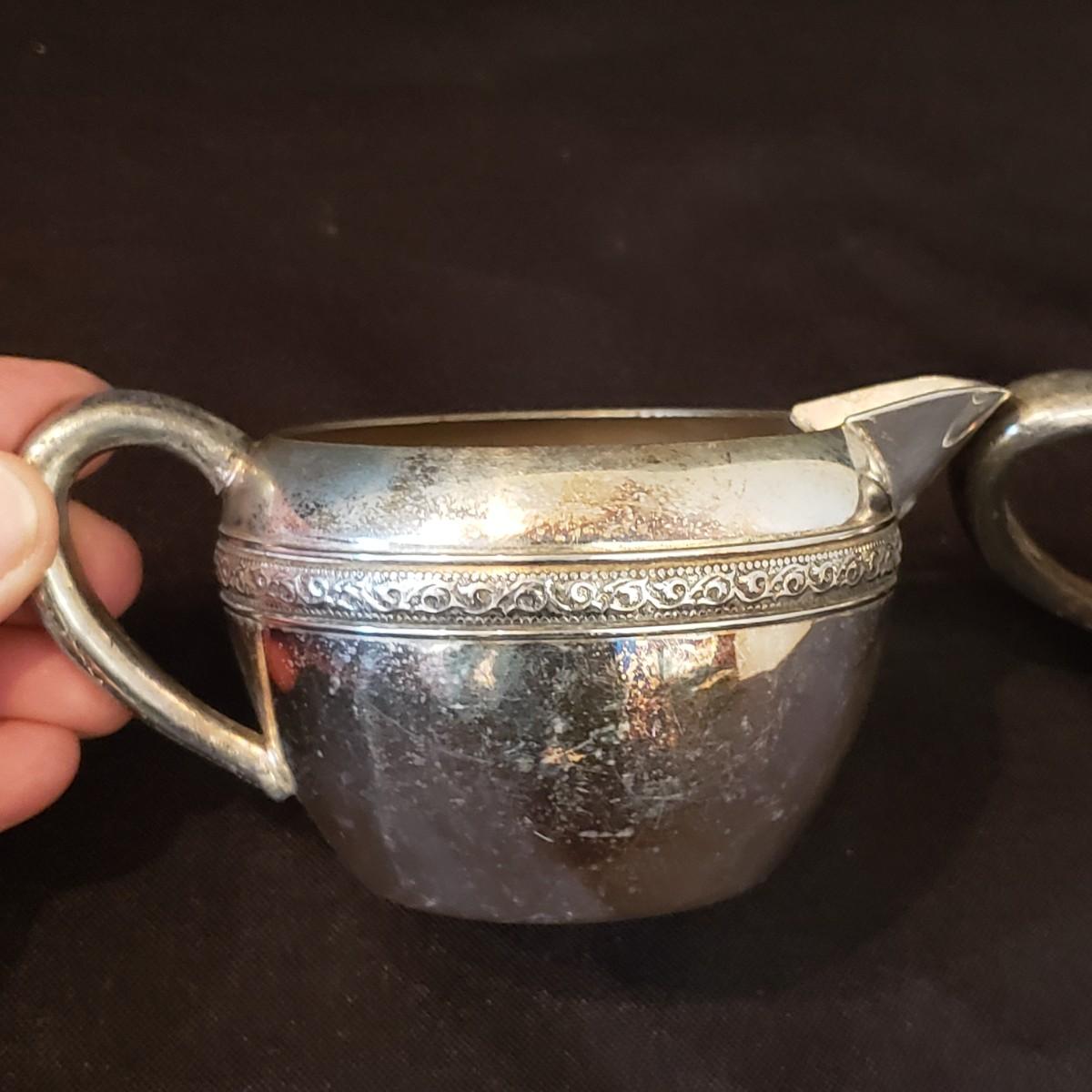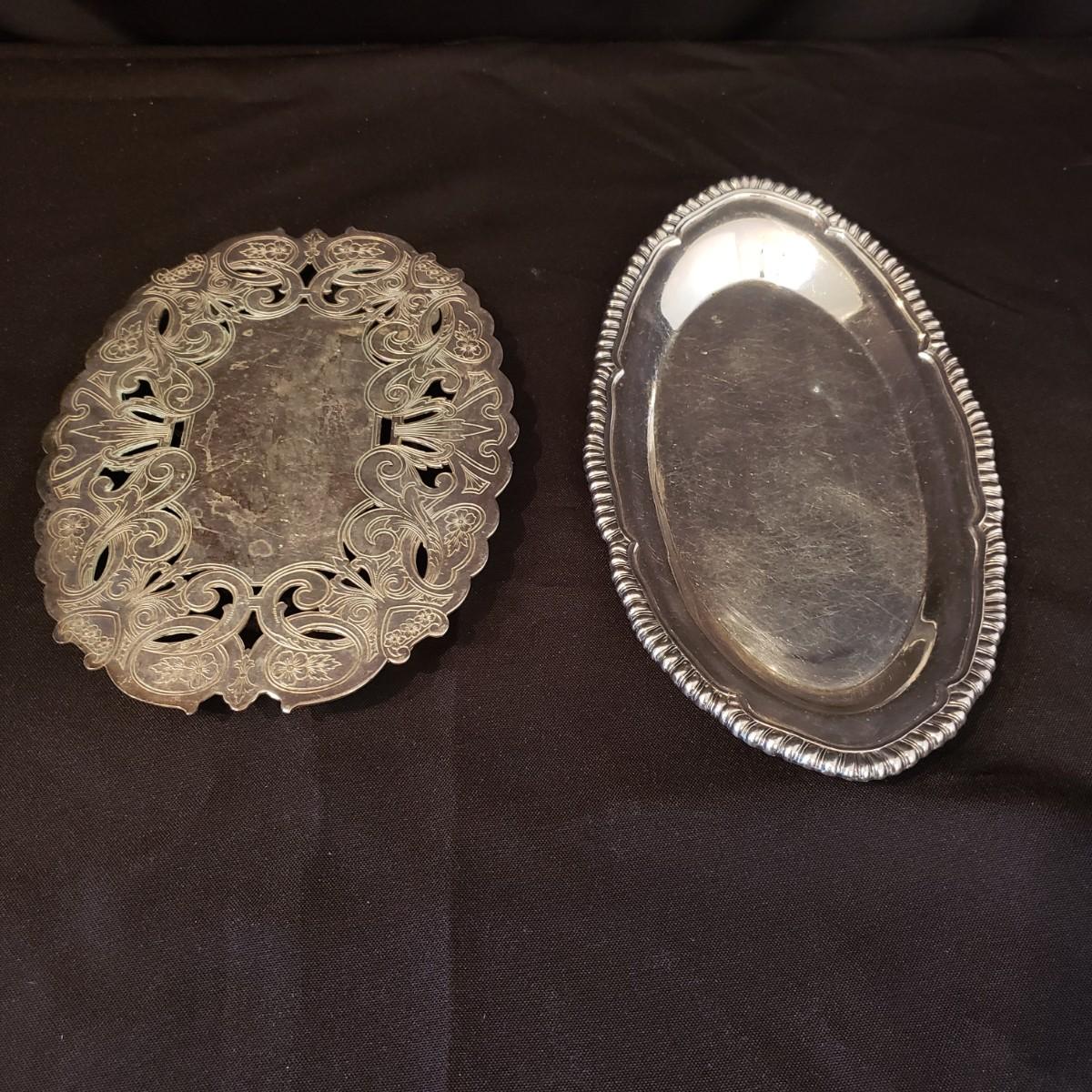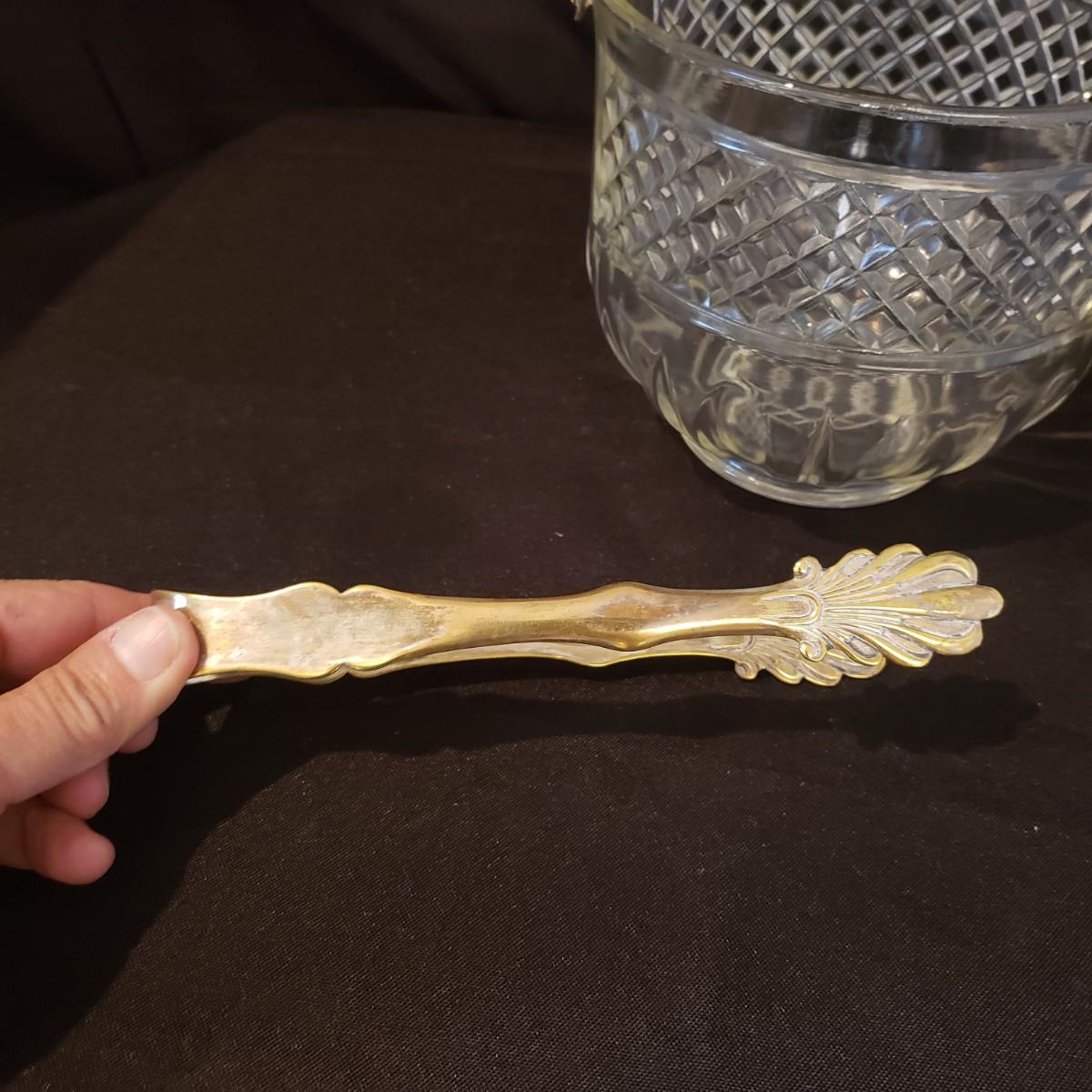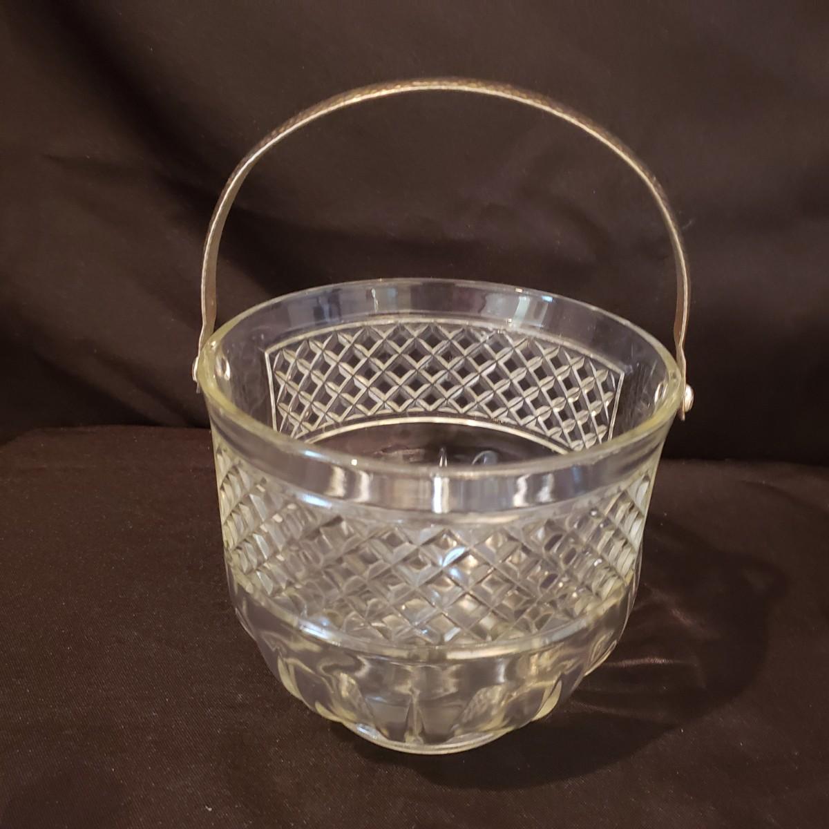 This is a large lot of serving ware from Reed and Barton, The International Silver Co. Wallace and more! The beautiful pitcher has an intricate feet design and measures 8" x 9"H. There are two nodules on the spout that probably from the spout lid. The wire basket is made by Gorham. The glass with metal handle ice bucket comes with tongs. There are four rimmed glass coasters with a glass and silver-plated rimmed egg holder. See pictures for details.