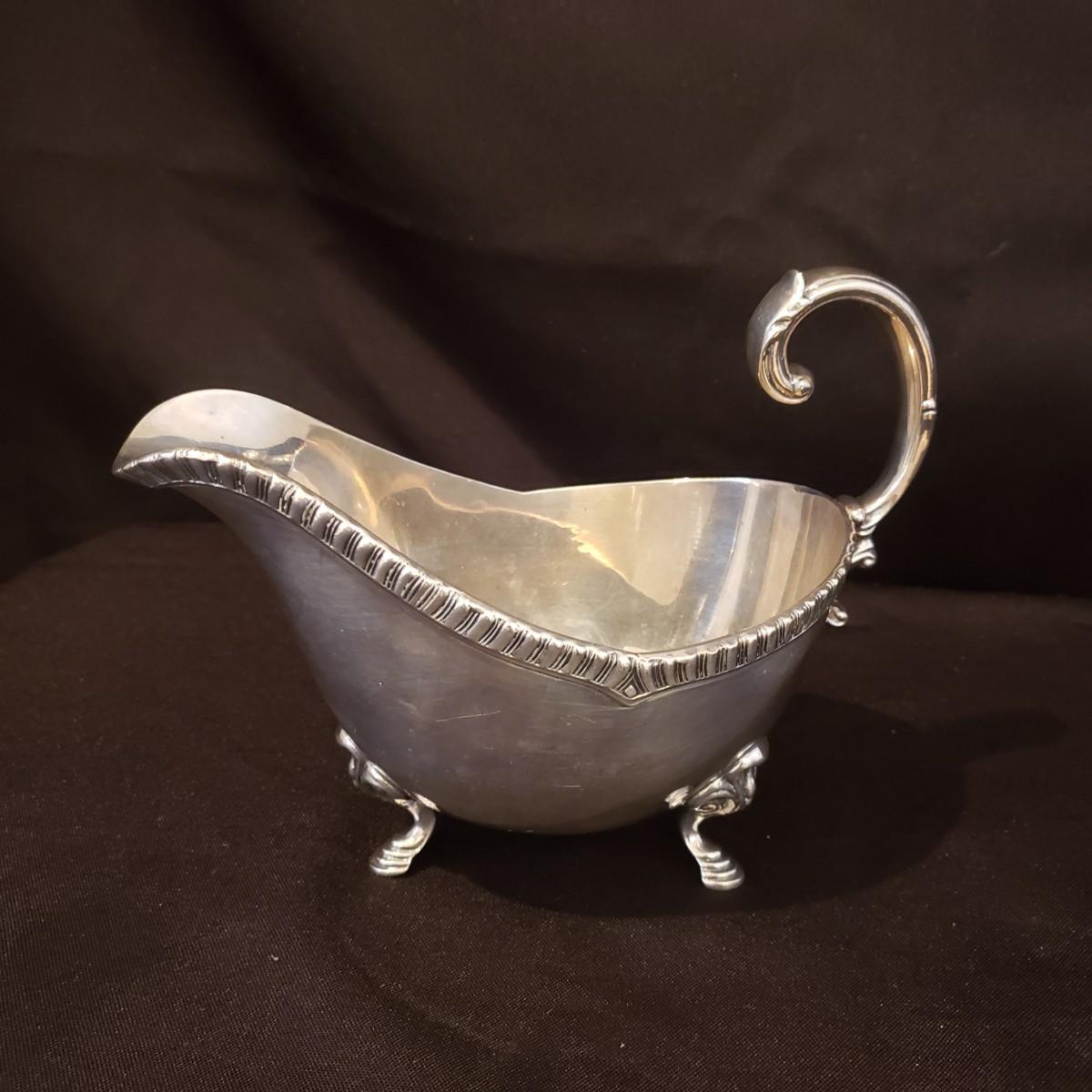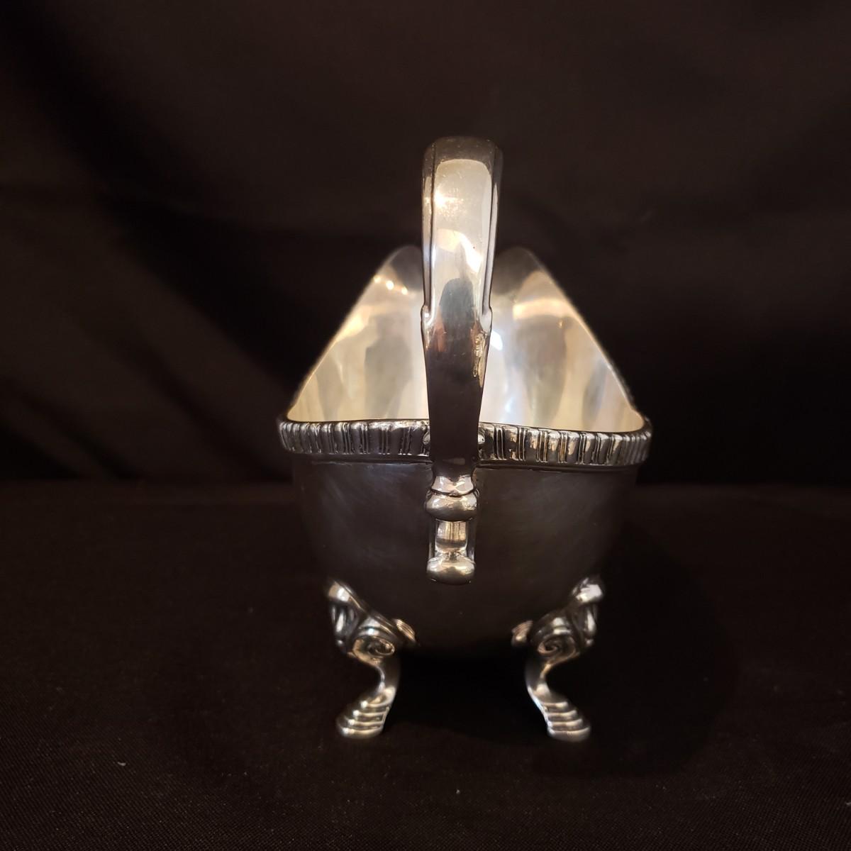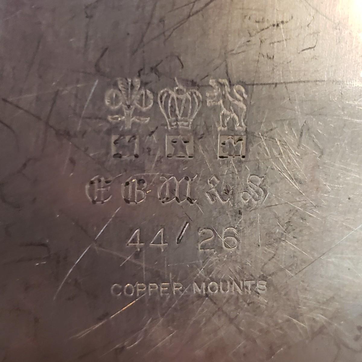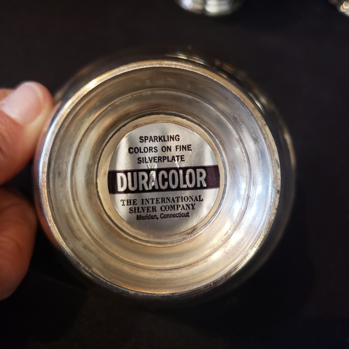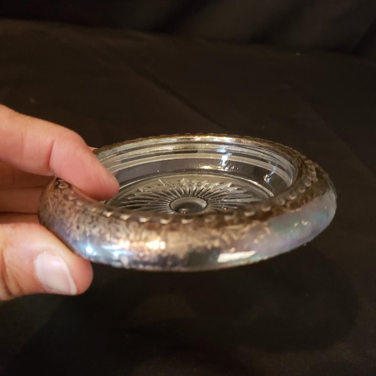 This is a large lot of serving ware from Reed and Barton, The International Silver Co. Wallace and more! The beautiful pitcher has an intricate feet design and measures 8" x 9"H. There are two nodules on the spout that probably from the spout lid. The wire basket is made by Gorham. The glass with metal handle ice bucket comes with tongs. There are four rimmed glass coasters with a glass and silver-plated rimmed egg holder. See pictures for details.