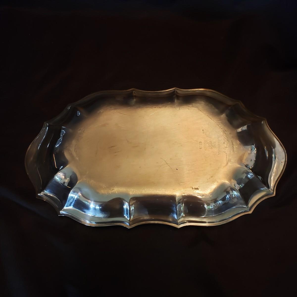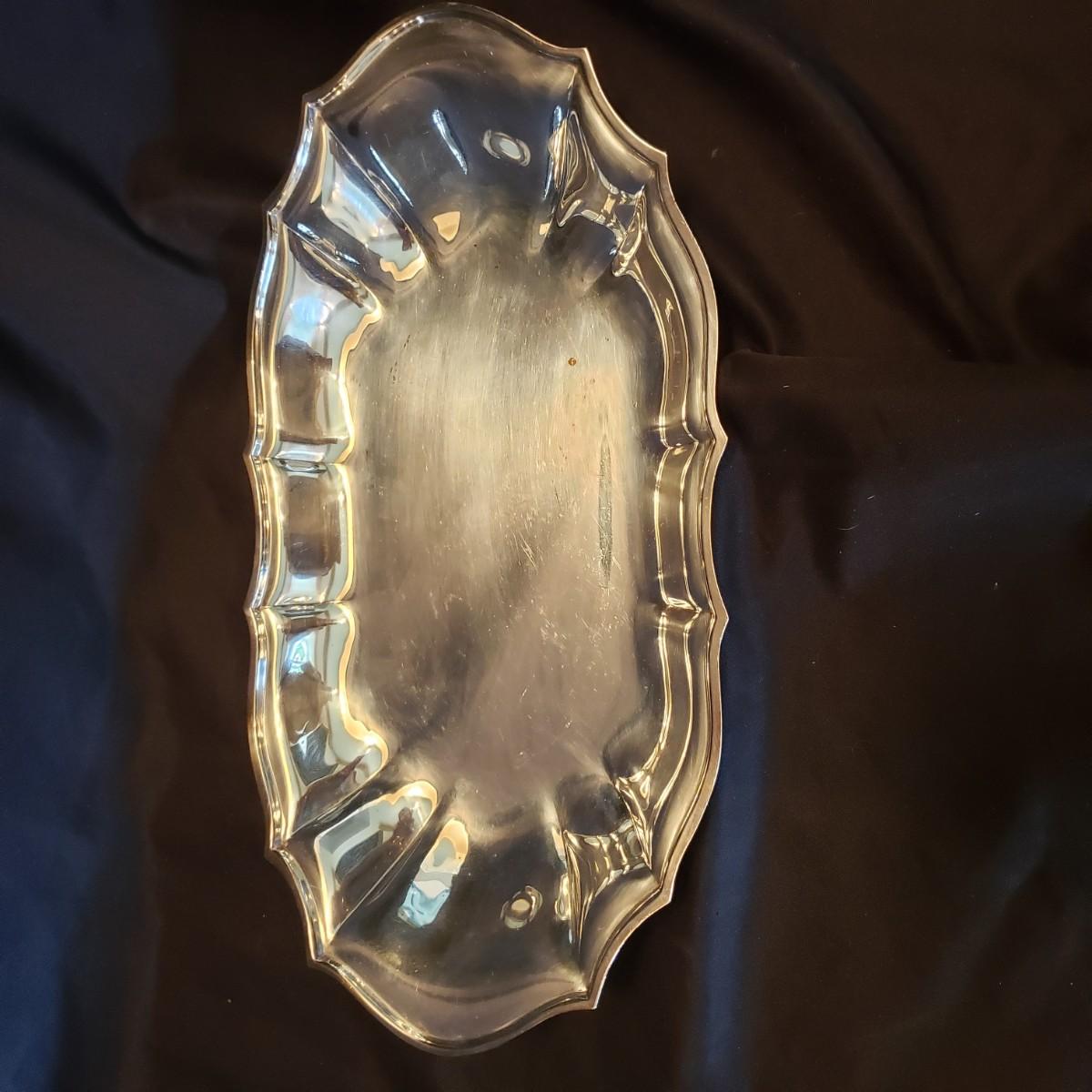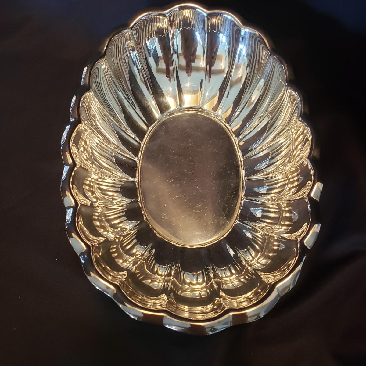This silver platter and bowl lot contains Reed & Barton, Chadwick and Chippendale silverplate platters and bowls. The rectangular bowl measures 12" x 8" x 2" H.